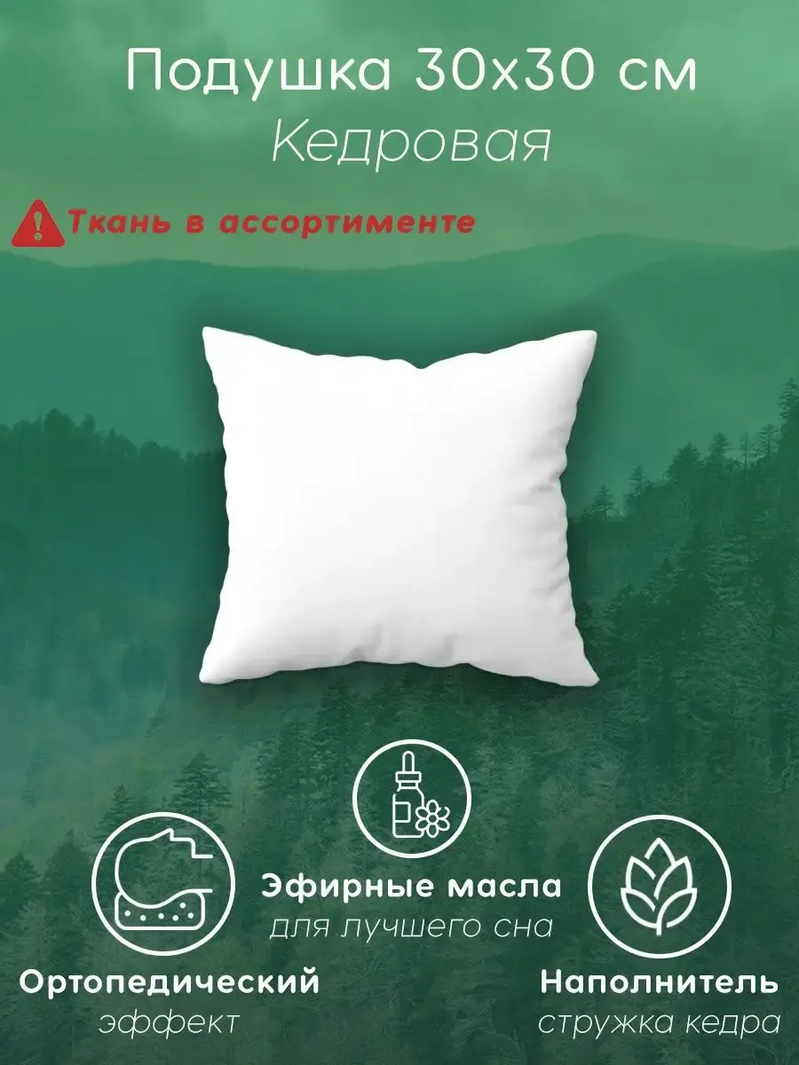 Подушка для здорового сна. Можно использовать как декоративную подушку для зала, гостинной. Размер подушки 300х300 мм. Жесткость подушки вы можете регулировать убирая наполнитель. Наполнитель: полностью экологичная и натуральная кедровая стружка. Хлопковая подушка с кедровой стружкой наполнит Ваш дом ароматом натурального Сибирского кедра! Приятное ощущение - сон на природе: палатка, маленький домик в лесу или поляна под открытым небом... Дышится легко, пьянящий аромат трав и деревьев дурманит, звуки природы ласкают слух. Спится легко и сладко... В городе такое удовольствие получить трудно, но возможно. В этом Вам помогут наши кедровые подушки. Кедровая подушка натуральна, экологична и полезна для здоровья. Обладает ненавязчивым ароматом хвойной древесины, что особо ценно в суете мегаполиса. Этот аромат несет невидимую пользу, предохраняя вашу семью от респираторных заболеваний, благодаря огромному количеству эфирных масел и фитонцидов. Особая фракция стружки делает подушки мягкими и упругими - их можно использовать как декоративные, диванные, для дневного отдыха и ночного сна, как подушки у изголовья. К тому же такая подушка это волшебный подарок на Новый год или новоселье! Подушка имеет массажный эффект, что хорошо для кожи лица и головы, для здоровья волос. Является профилактикой остеохондроза, головных болей, отеков лица и мешков под глазами. Чехол выполнен из 100% хлопка, имеет окантовку и застежку-молнию. Дорогие покупатели, обратите внимание, что ткань подушек в ассортименте, она может отличаться от ткани на фото!