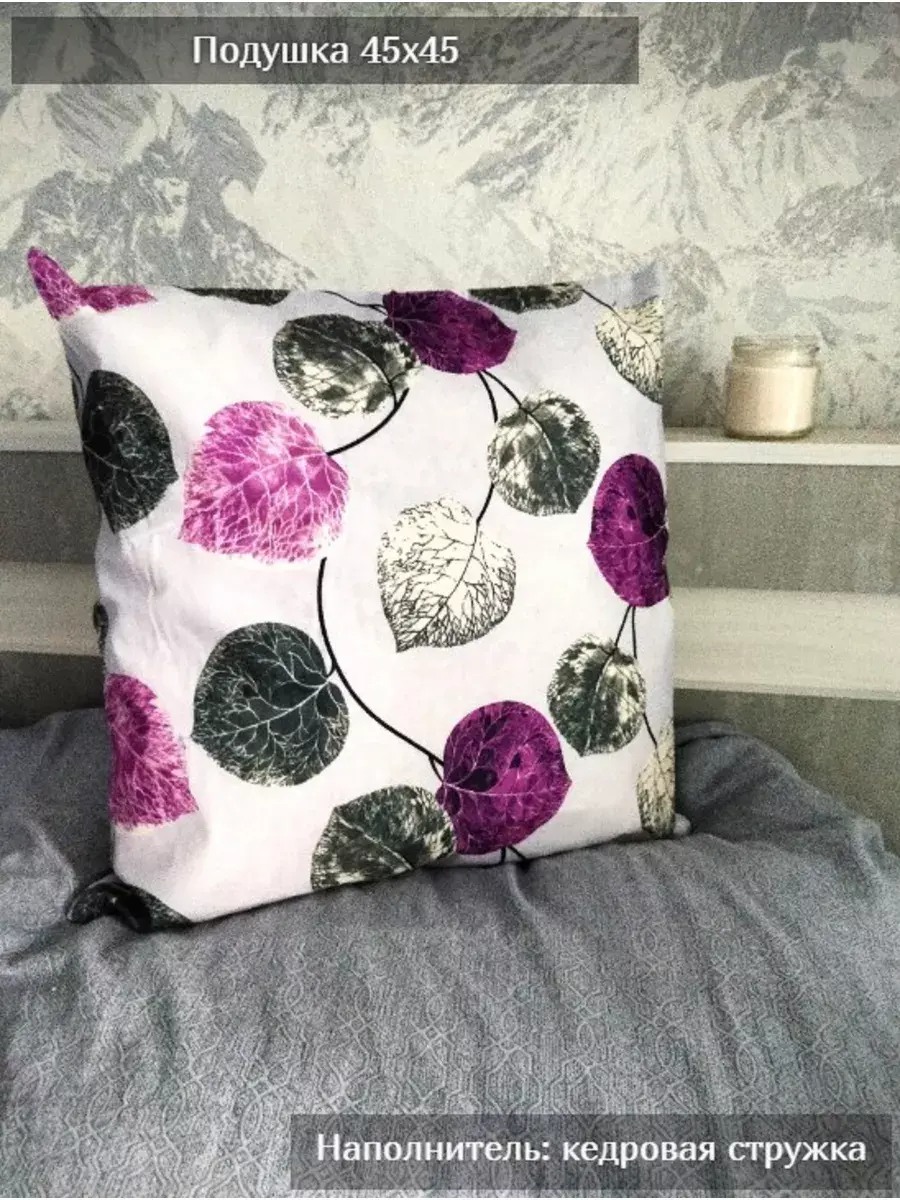 Подушка для здорового сна. Можно использовать как декоративную подушку для зала и гостинной. Размер подушки 450х450 мм. Жесткость подушки вы можете регулировать убирая наполнитель. Наполнитель: полностью экологичная и натуральная кедровая стружка. Хлопковая подушка с кедровой стружкой наполнит Ваш дом ароматом натурального Сибирского кедра! Приятное ощущение - сон на природе: палатка, маленький домик в лесу или поляна под открытым небом... Дышится легко, пьянящий аромат трав и деревьев дурманит, звуки природы ласкают слух. Спится легко и сладко... В городе такое удовольствие получить трудно, но возможно. В этом Вам помогут наши кедровые подушки. Кедровая подушка натуральна, экологична и полезна для здоровья. Обладает ненавязчивым ароматом хвойной древесины, что особо ценно в суете мегаполиса. Этот аромат несет невидимую пользу, предохраняя вашу семью от респираторных заболеваний, благодаря огромному количеству эфирных масел и фитонцидов. Особая фракция стружки делает подушки мягкими и упругими - их можно использовать как декоративные, диванные, для дневного отдыха и ночного сна, как подушки у изголовья. К тому же такая подушка это волшебный подарок на Новый год или новоселье! Подушка имеет массажный эффект, что хорошо для кожи лица и головы, для здоровья волос. Является профилактикой остеохондроза, головных болей, отеков лица и мешков под глазами. Чехол выполнен из 100% хлопка, имеет застежку-молнию.