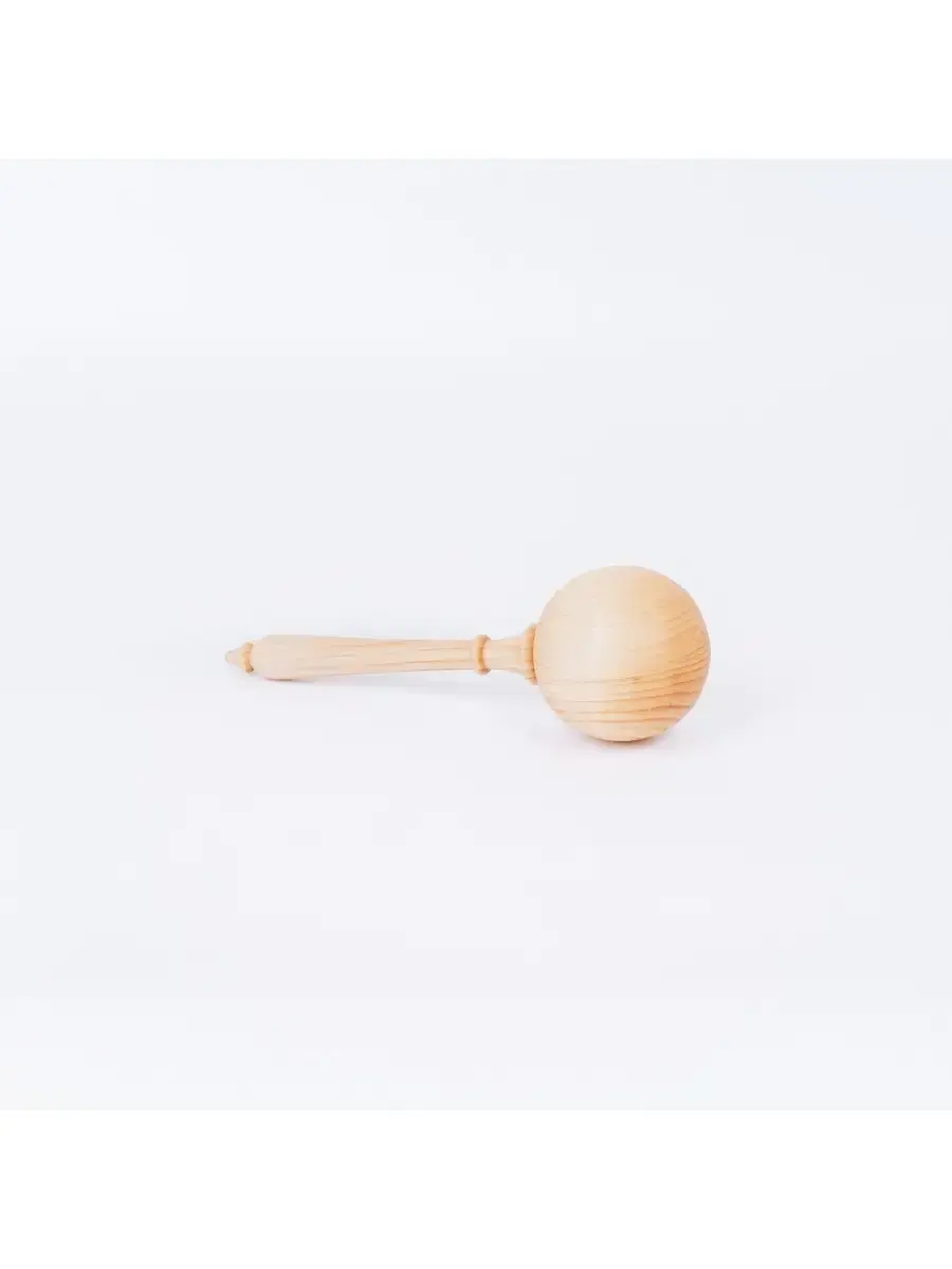 Классическая деревянная погремушка из Сибирского Кедра с наполнителем из пшена - **подарок природы детям!** Наши погремушки изготовлены из цельного куска дерева, без использования клея, лака и других вредных веществ. Тщательно отполированы и отшлифованы, легкие, удобно держать в маленькой ручке. Древесина кедра обладает антисептическими свойствам, а это значит, что болезнетворные микроорганизмы на поверхности игрушки размножать не будут и погибнут. Благодаря наполнителю из пшена, погремушка привлекает и концентрирует внимание крохи, развивая слуховое и пространственное восприятие: учит находить источник звука, прослеживать движение игрушки. Размер: длина 18.5 см, ширина 5.9 см, вес 45г.