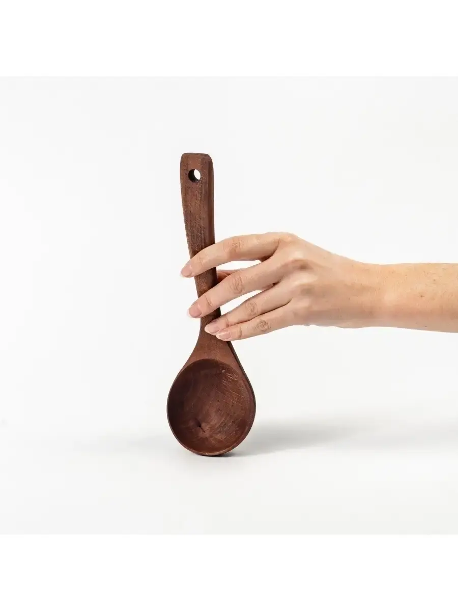 Половник из древесина бука для вашей кухни! При использовании деревянной поварешки во время приготовления пищи исключается вероятность получить ожог, потому что у дерева низкая проводимость тепла, и в отличие от металла оно не нагревается. Такая утварь не царапает посуду, ведь дерево - в некотором смысле податливый и мягкий материал. Это дает возможность использовать его для готовки в кастрюлях и сковородках с антипригарным и тефлоновым покрытием. В отличие от пластика и прочих новомодных материалов, натуральный массив не выделяет токсинов и не влияет на вкус блюд. Размер: длина 24,4 см, ширина 7,5 см.