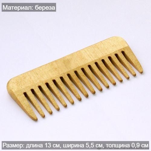 Расческа-гребень из натуральной древесины сибирской березы. Выполнена из высококачественной древесины березы. Очень аккуратно выполнена. Покрыта тонким слоем лака. Подходят для любого типа волос и безопасна для кожи! Подойдет взрослым, так и детям. Можно смело использовать тем, у кого поврежденные и ломкие волосы. Скругленные зубья гребня не цепляют волосы и бережно массируют кожу головы. Снимает статическое электричество. Расческа легка и практична. Прекрасный атрибут косметички!