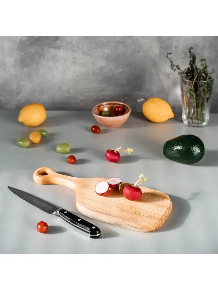 Деревянная разделочная доска из цельного куска дерева Сибирский Кедр! Мы предлагаем вам деревянные разделочные доски, изготовленные из цельного бруска дерева Сибирский кедр. Они обладают массой положительных качеств: ножи не тупятся, долговечные, прочные, устойчивы к повреждениям и перепадам температуры, подходят для разделывания больших кусков мяса, а самое главное, а самое главное, кедр обладает антибактериальными свойствами, и бактерии, попадая в волокна доски, не размножаются, а погибают. Ну и, конечно же, частички разделочной доски, попадая в организм человека не причинят вреда. Деревянные доски имеют различную форму со специальным отверстием для крепления на стену. Размер: длина 32,5 см, ширина 12,5 см, высота 2 см.
