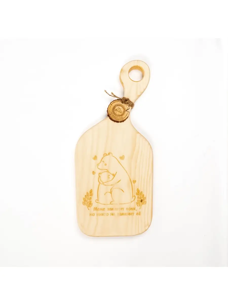 Разделочная деревянная доска из древесины сибирского кедра для мяса с гравировкой "Мама заменит всех, но никто не заменит ее". Мы предлагаем вам деревянные разделочные доски, изготовленные из цельного бруска дерева Сибирский кедр. Они обладают массой положительных качеств: ножи не тупятся, долговечные, прочные, устойчивы к повреждениям и перепадам температуры, подходят для разделывания больших кусков мяса, а самое главное, а самое главное, кедр обладает антибактериальными свойствами, и бактерии, попадая в волокна доски, не размножаются, а погибают. Ну и, конечно же, частички разделочной доски, попадая в организм человека не причинят вреда.