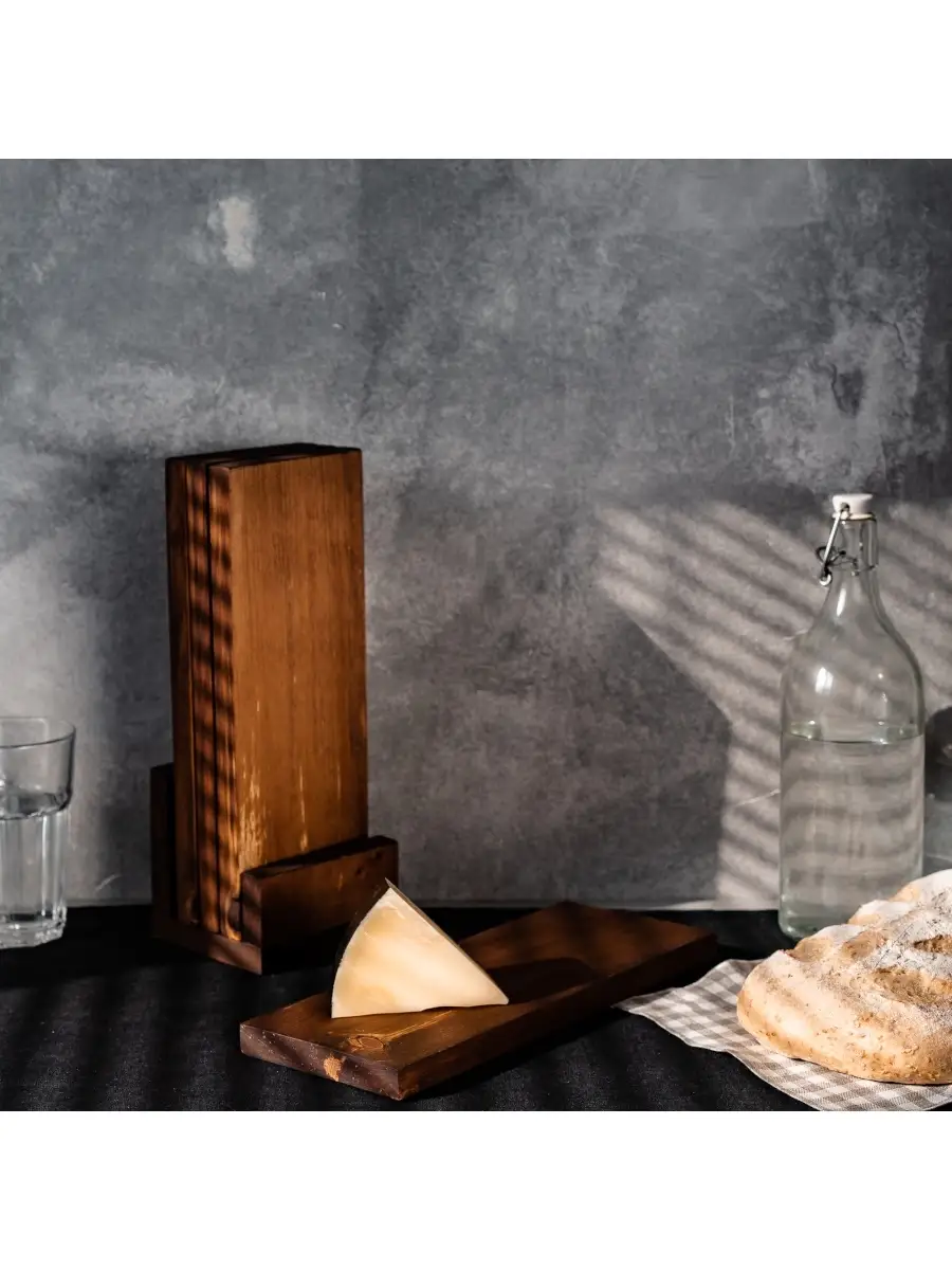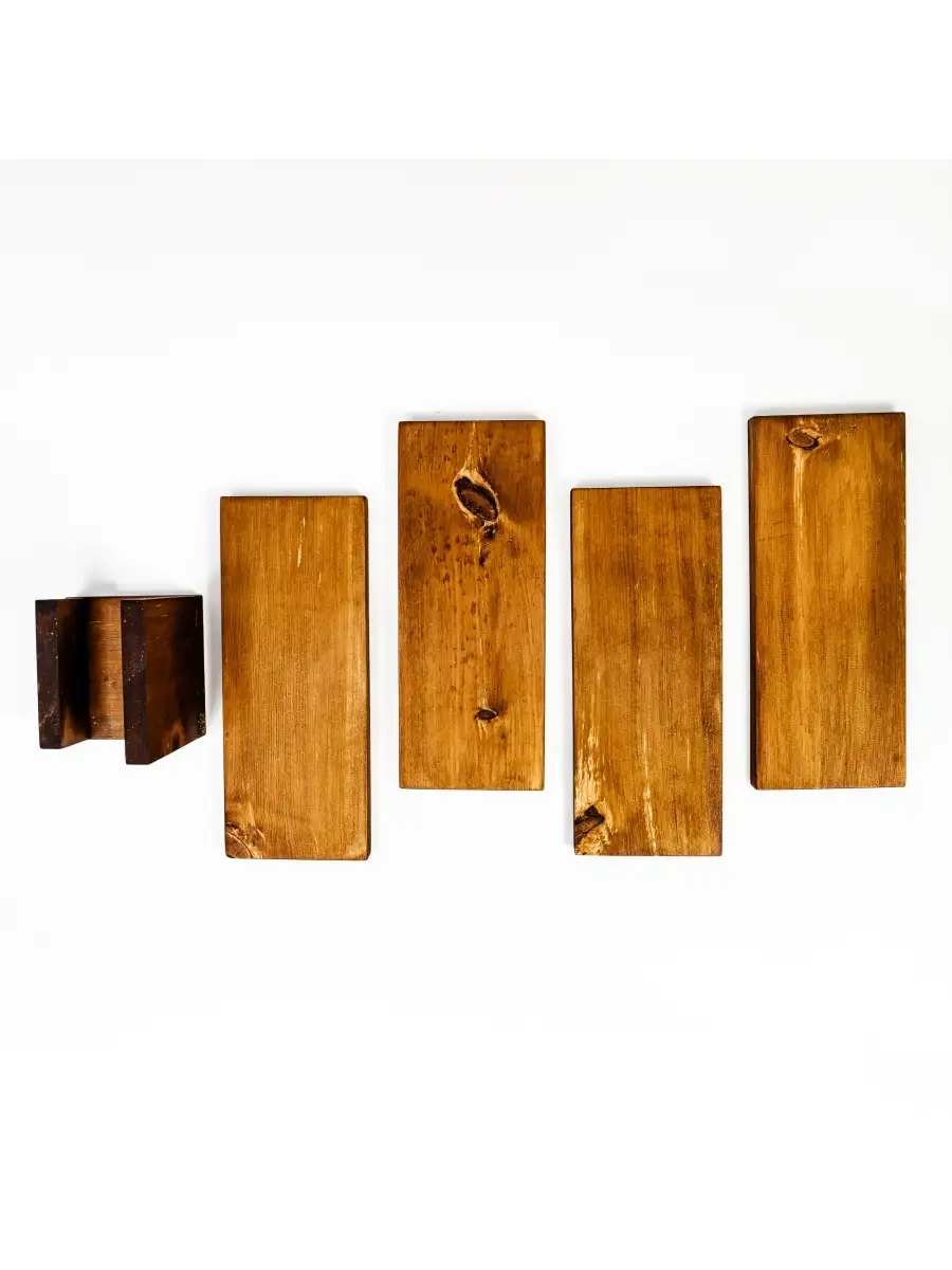 **Разделочные доски 4 шт. на подставке из сибирского кедра.** Разделочная доска - совершенно необходимый предмет на каждой кухне. Но одной разделочной доски далеко не всегда достаточно для того, чтобы процесс готовки был удобным. Предлагаем вам нашу новинку - набор разделочных досок из массива сибирского кедра на подставке! Деревянные доски долговечны, они достаточно мягкие, чтобы не тупить нож при использовании и наиболее универсальны. Кроме того, дерево придает интерьеру кухни дополнительный уют, то есть такую разделочную доску можно рассматривать не только в качестве инструмента, но и как аксессуар. Размер: длина 300 мм, ширина 120 мм, высота 20 мм.