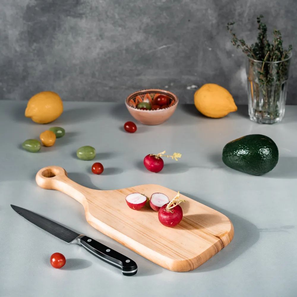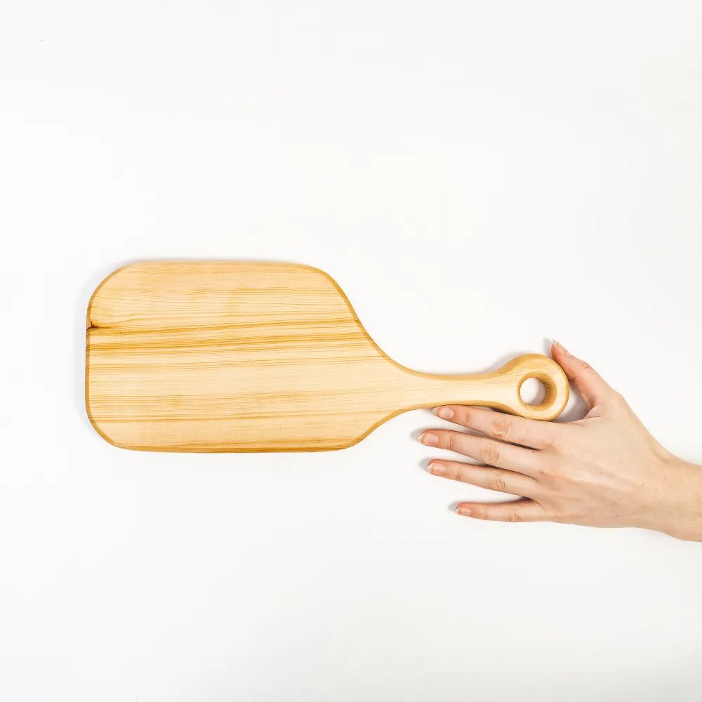 Деревянная разделочная доска из цельного куска дерева Сибирский Кедр! Мы предлагаем вам деревянные разделочные доски, изготовленные из цельного бруска дерева Сибирский кедр. Они обладают массой положительных качеств: ножи не тупятся, долговечные, прочные, устойчивы к повреждениям и перепадам температуры, подходят для разделывания больших кусков мяса, а самое главное, а самое главное, кедр обладает антибактериальными свойствами, и бактерии, попадая в волокна доски, не размножаются, а погибают. Ну и, конечно же, частички разделочной доски, попадая в организм человека не причинят вреда. Деревянные доски имеют различную форму со специальным отверстием для крепления на стену. Перед использованием обязательно промыть теплой проточной водой, чтоб смыть остатки масла и морилки. Изделие может стать чуть светлее. Первое время возможно оставление следов от морилки, поэтому лучше для протирания использовать бумажные полотенца. **Размер:** длина 35,5 см., ширина 14 см., высота 2.5 см.