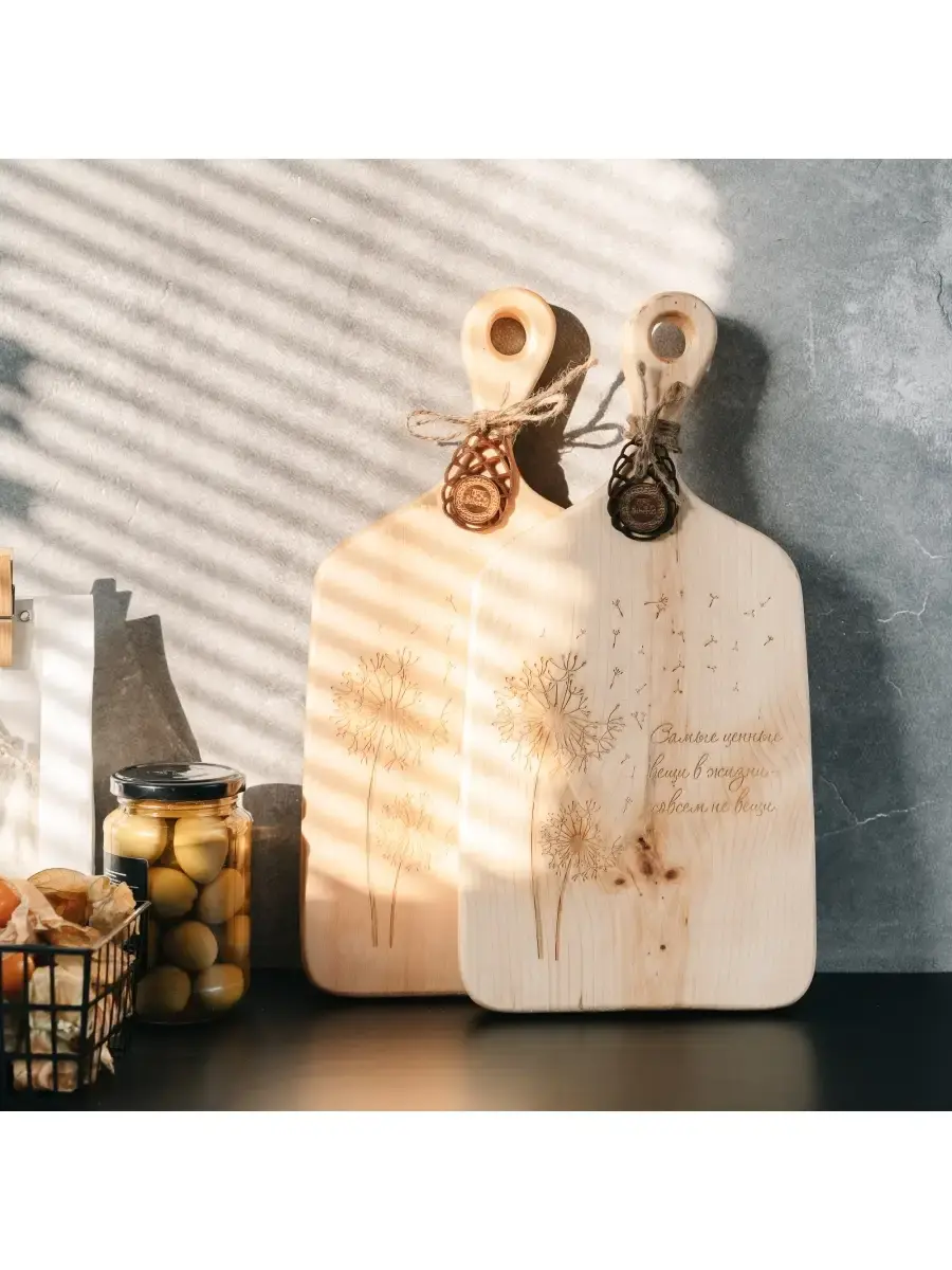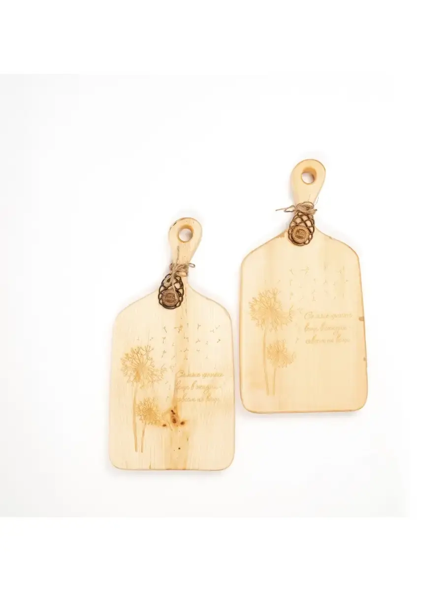 Набор из двух разделочных досок с гравировкой "Самые ценные вещи в жизни - совсем не вещи". Мы предлагаем вам деревянные разделочные доски, изготовленные из цельного бруска дерева Сибирский кедр. Они обладают массой положительных качеств: ножи не тупятся, долговечные, прочные, устойчивы к повреждениям и перепадам температуры, подходят для разделывания больших кусков мяса, а самое главное, а самое главное, кедр обладает антибактериальными свойствами, и бактерии, попадая в волокна доски, не размножаются, а погибают. Ну и, конечно же, частички разделочной доски, попадая в организм человека не причинят вреда. Размер: длина 345 мм., ширина 175 мм., высота 25 мм. 2 шт.
