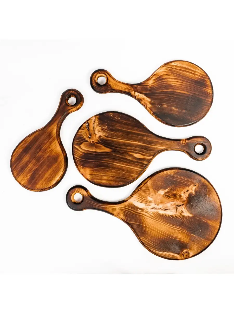 Разделочные доски 4 шт. из сибирского кедра. Разделочная доска - совершенно необходимый предмет на каждой кухне. Но одной разделочной доски далеко не всегда достаточно для того, чтобы процесс готовки был удобным. Предлагаем вам нашу новинку - набор разделочных досок из массива сибирского кедра! Деревянные доски долговечны, они достаточно мягкие, чтобы не тупить нож при использовании и наиболее универсальны. Кроме того, дерево придает интерьеру кухни дополнительный уют, то есть такую разделочную доску можно рассматривать не только в качестве инструмента, но и как аксессуар. Размер: 1. 26х13х1,9 см.; 2. 29х15,5х1,9 см.; 3. 32х18х1,9 см.; 4. 36х20,5х1,9 см.