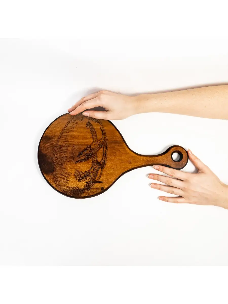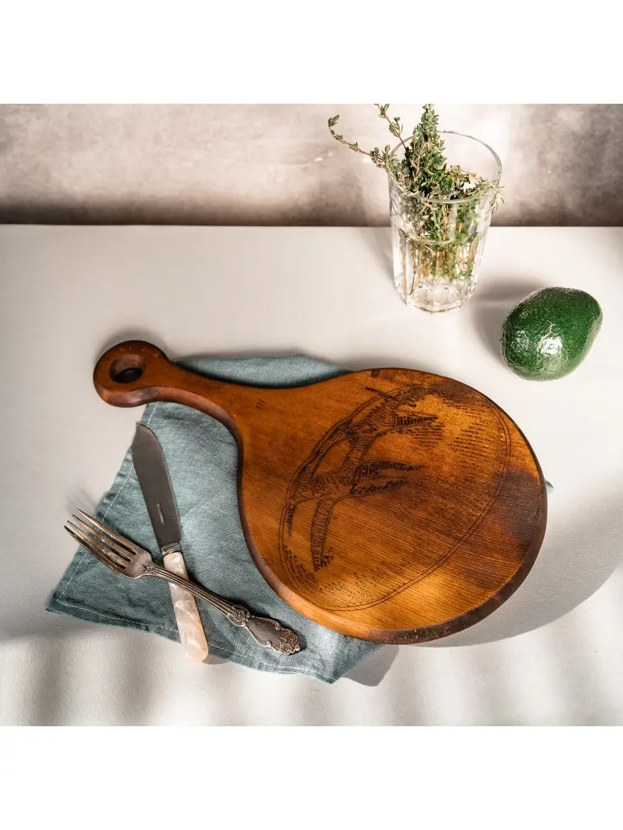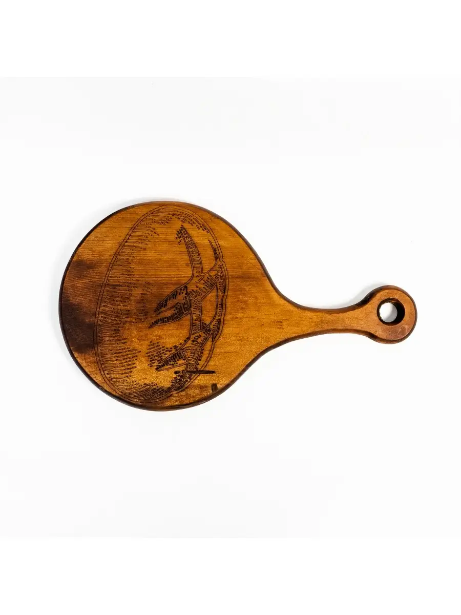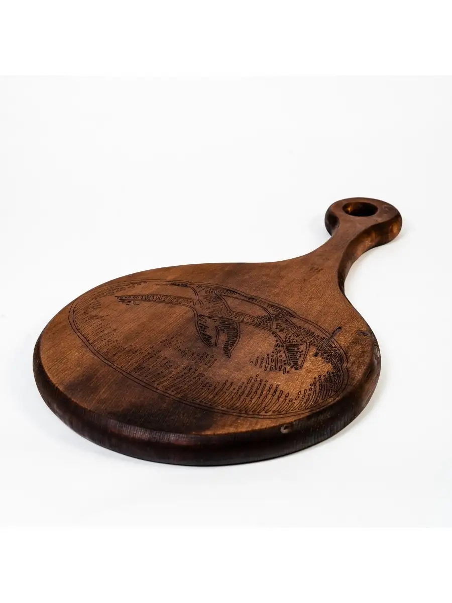 Деревянная разделочная доска из цельного куска дерева Сибирский Кедр! Мы предлагаем вам деревянные разделочные доски, изготовленные из цельного бруска дерева Сибирский кедр. Они обладают массой положительных качеств: ножи не тупятся, долговечные, прочные, устойчивы к повреждениям и перепадам температуры, подходят для разделывания больших кусков мяса, а самое главное, а самое главное, кедр обладает антибактериальными свойствами, и бактерии, попадая в волокна доски, не размножаются, а погибают. Ну и, конечно же, частички разделочной доски, попадая в организм человека не причинят вреда. Деревянные доски имеют различную форму со специальным отверстием для крепления на стену. На фото доска разделочная из сибирского кедра. Размер: диаметр 36 см, 20,5 см,ширина высота 2 см.
