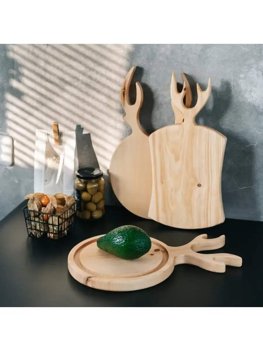 **Разделочные доски из сибирского кедра 3 шт.** Разделочная доска - совершенно необходимый предмет на каждой кухне. Но одной разделочной доски далеко не всегда достаточно для того, чтобы процесс готовки был удобным. Предлагаем вам нашу новинку - набор разделочных досок из массива сибирского кедра! Дерево придает интерьеру кухни дополнительный уют, то есть такую разделочную доску можно рассматривать не только в качестве инструмента, но и как аксессуар. **Размер:** Три доски: 1. 370х220х25 мм. 2. 350х220х25 мм. 3. 350х220х25 мм.