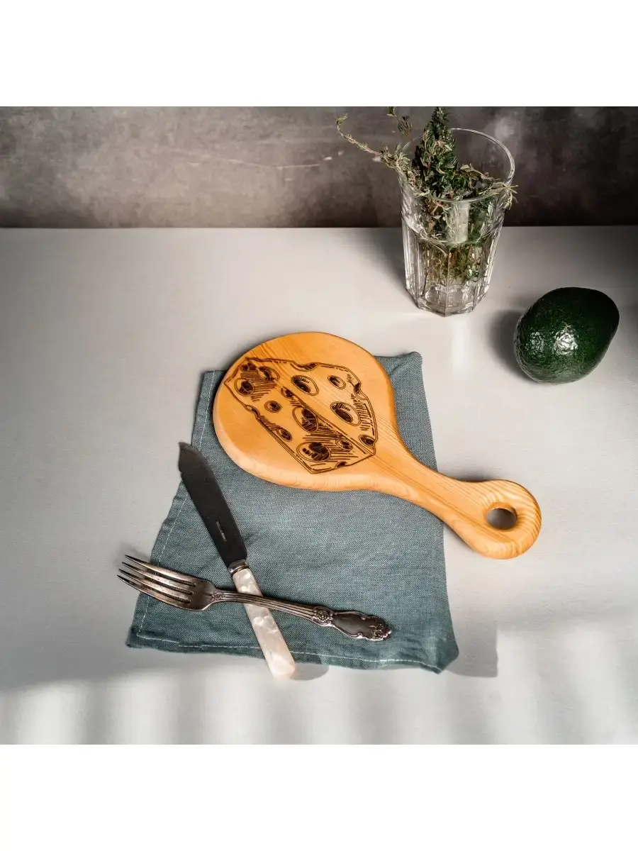 Деревянная разделочная доска из цельного куска дерева Сибирский Кедр! Мы предлагаем вам деревянные разделочные доски, изготовленные из цельного бруска дерева Сибирский кедр. Они обладают массой положительных качеств: ножи не тупятся, долговечные, прочные, устойчивы к повреждениям и перепадам температуры, подходят для разделывания больших кусков мяса, а самое главное, а самое главное, кедр обладает антибактериальными свойствами, и бактерии, попадая в волокна доски, не размножаются, а погибают. Ну и, конечно же, частички разделочной доски, попадая в организм человека не причинят вреда. Деревянные доски имеют различную форму со специальным отверстием для крепления на стену. На фото доска разделочная из сибирского кедра. Размер: диаметр 26 см, ширина 13см, высота 2 см.