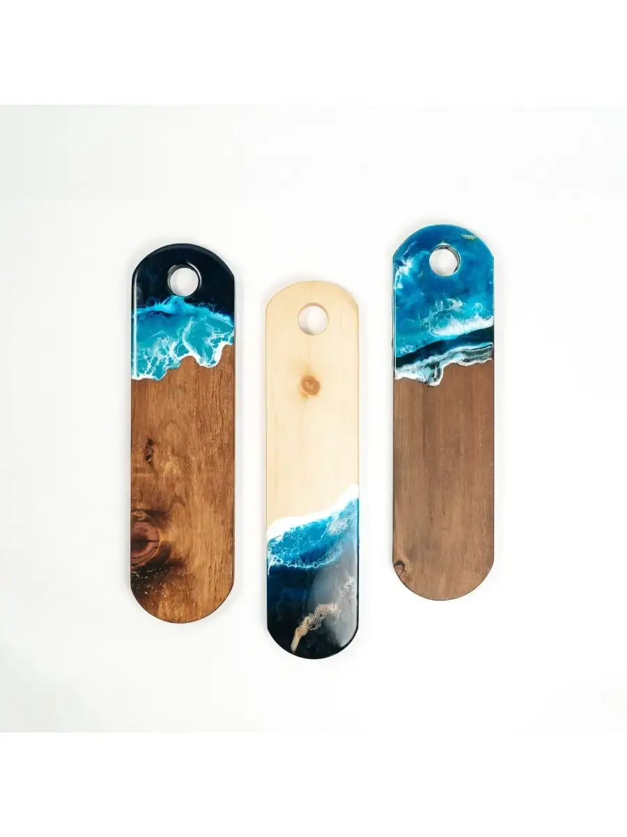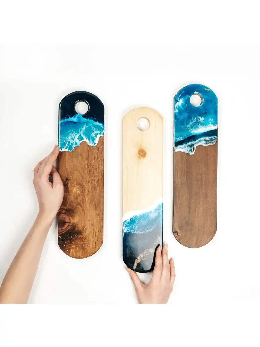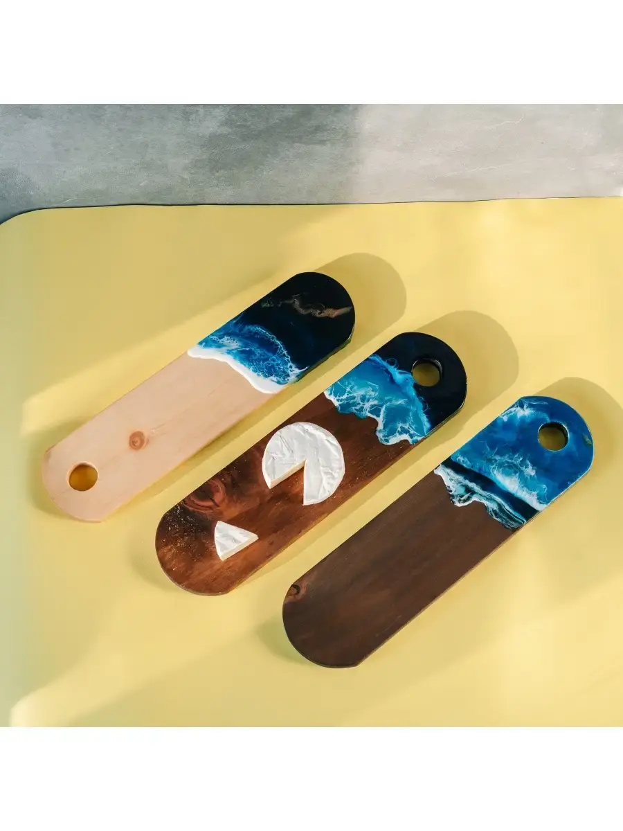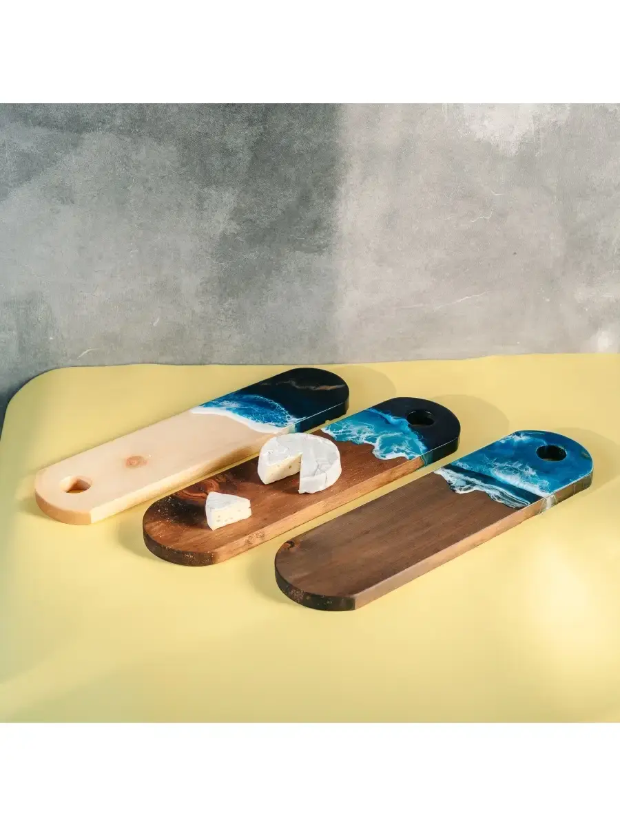 **Набор разделочных досок из сибирского кедра с эпоксидной смолой 3 шт.** Разделочная доска - совершенно необходимый предмет на каждой кухне. Но одной разделочной доски далеко не всегда достаточно для того, чтобы процесс готовки был удобным. Предлагаем вам нашу новинку - набор разделочных досок из массива сибирского кедра! Дерево придает интерьеру кухни дополнительный уют. Наши разделочны доски можно ый, орех, рассматривать не только в качестве инструмента, но и как аксессуар. Размер: 40х11х2,2 см. Цвет: натуральный, орех, дуб.