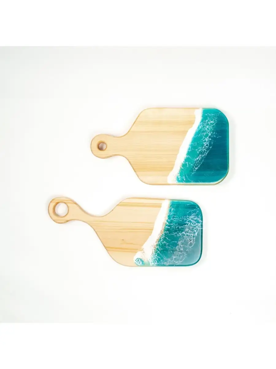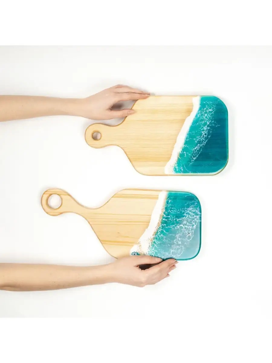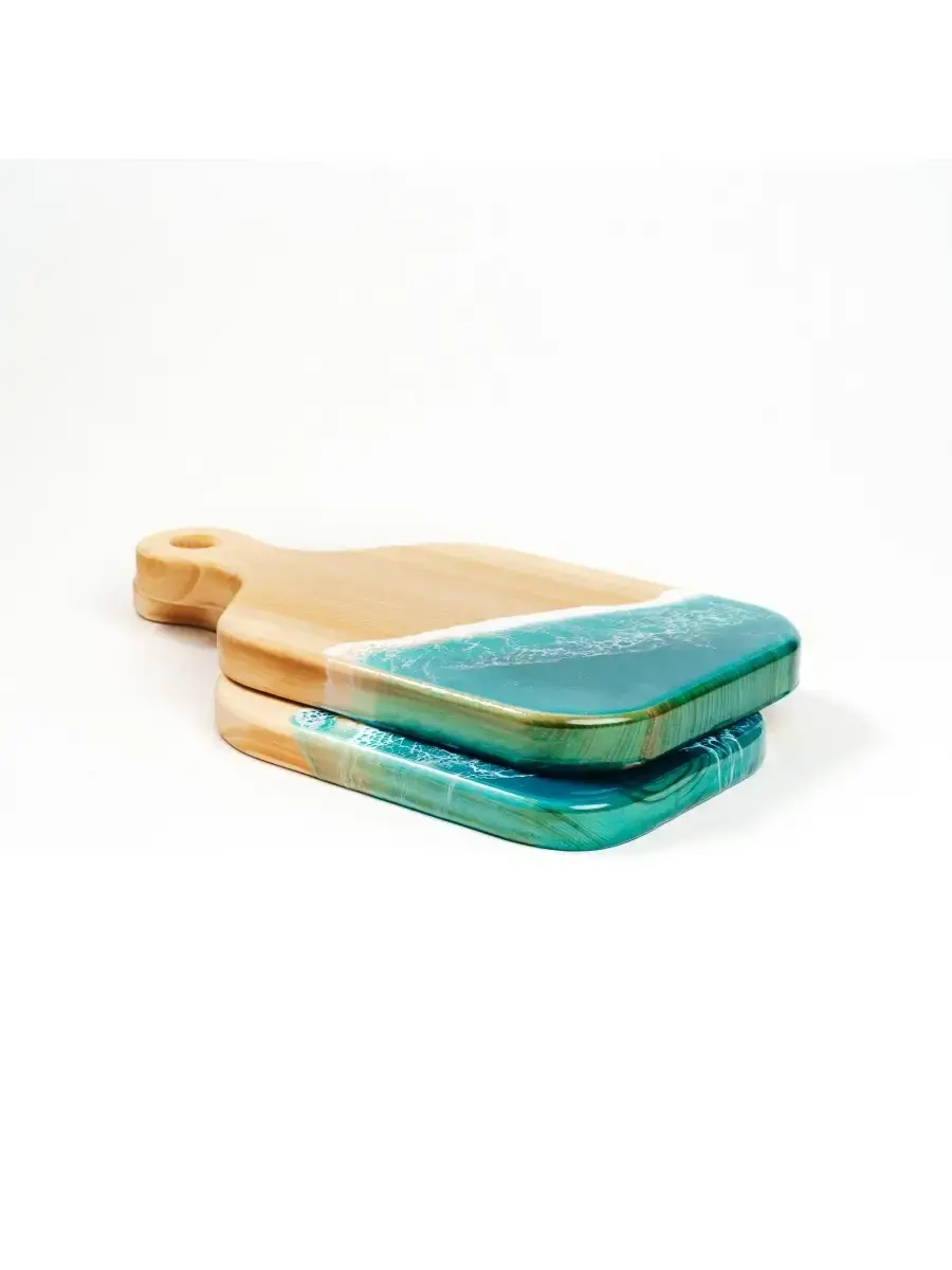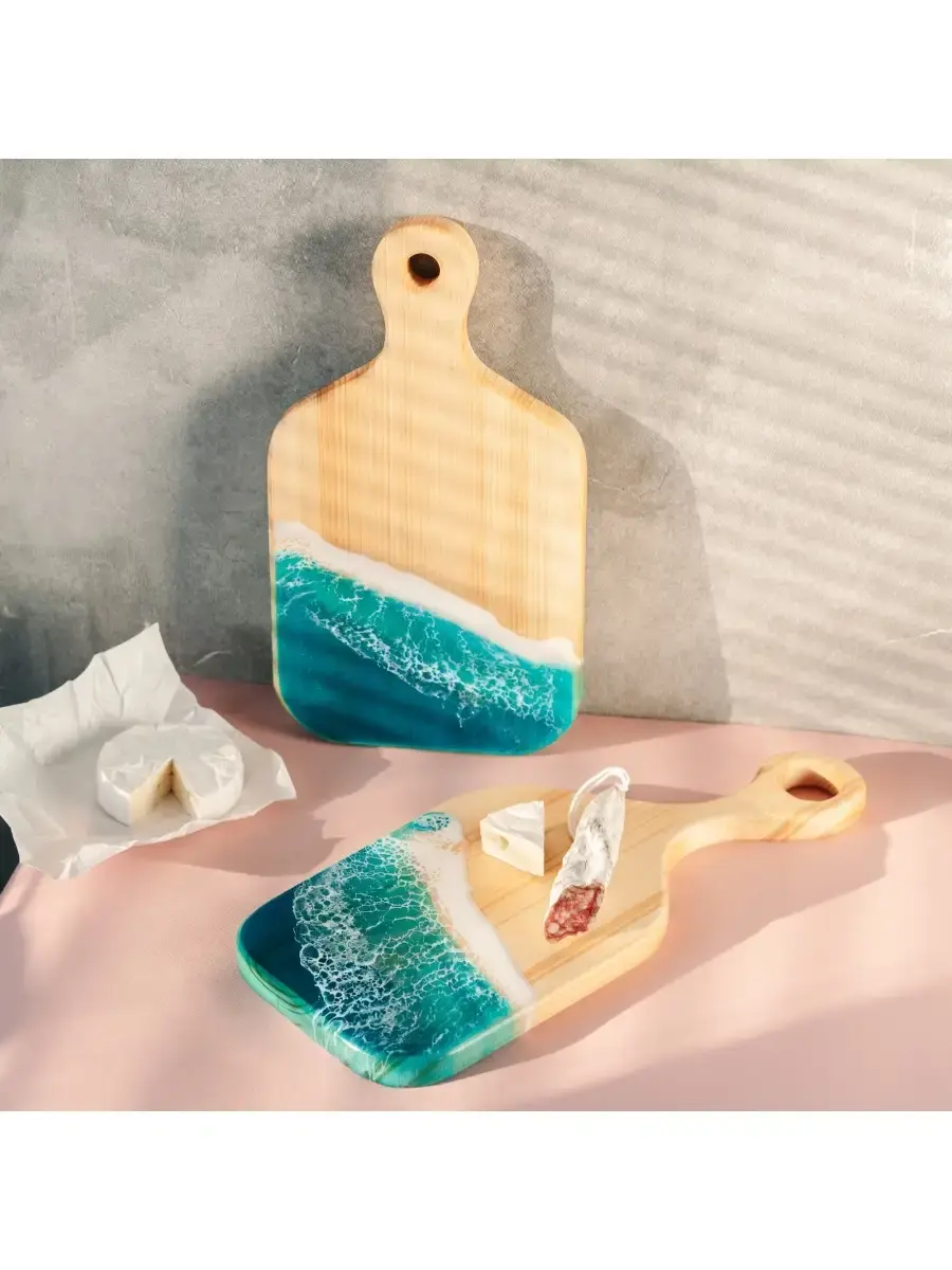 **Набор разделочных досок из сибирского кедра с эпоксидной смолой 2 шт.** Разделочная доска - совершенно необходимый предмет на каждой кухне. Но одной разделочной доски далеко не всегда достаточно для того, чтобы процесс готовки был удобным. Предлагаем вам нашу новинку - набор разделочных досок из массива сибирского кедра! Размер: 1. 340х190х25 мм. 2. 440х150х25 мм.