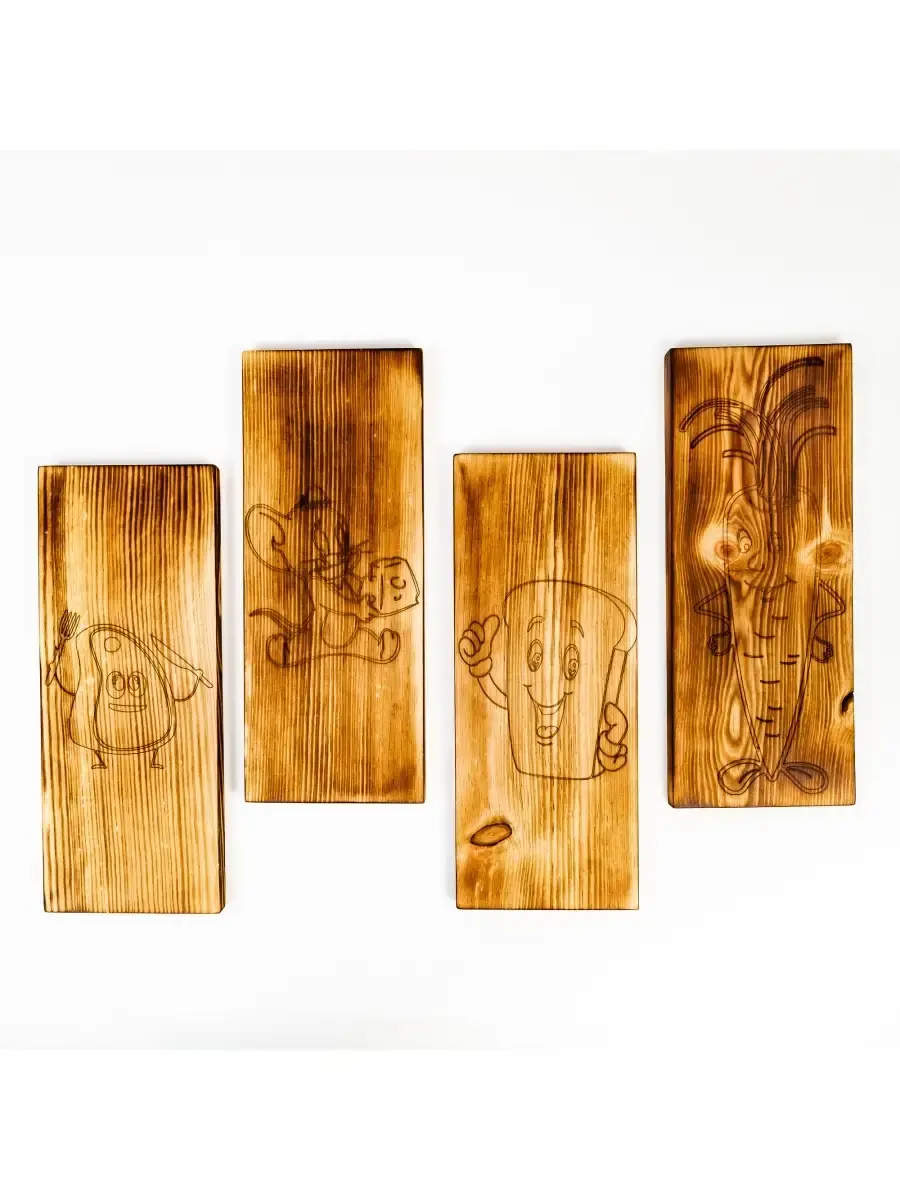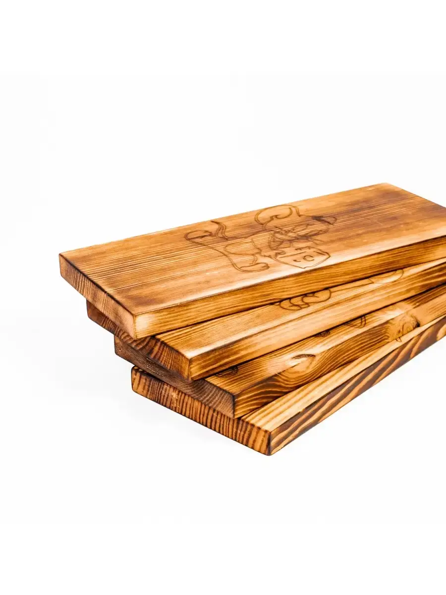 Разделочные доски 4 шт. из сибирского кедра. Разделочная доска - совершенно необходимый предмет на каждой кухне. Но одной разделочной доски далеко не всегда достаточно для того, чтобы процесс готовки был удобным. Предлагаем вам нашу новинку - набор разделочных досок из массива сибирского кедра! Деревянные доски долговечны, они достаточно мягкие, чтобы не тупить нож при использовании и наиболее универсальны. Кроме того, дерево придает интерьеру кухни дополнительный уют, то есть такую разделочную доску можно рассматривать не только в качестве инструмента, но и как аксессуар. Размер одной доски: длина 30 см, ширина 12 см, высота 2 см. 4 штуки.