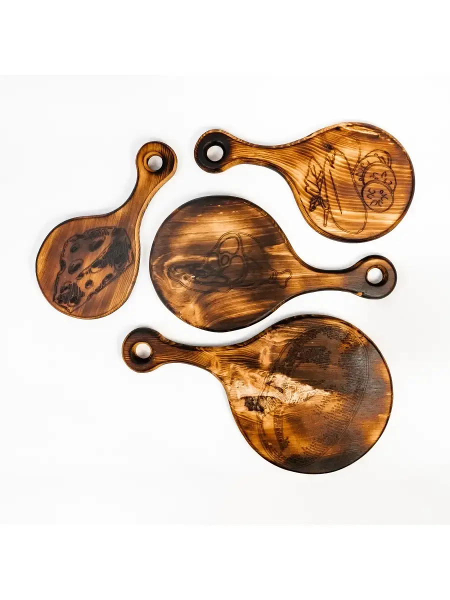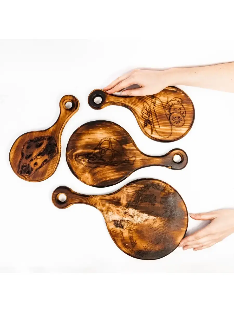 Разделочные доски 4 шт. из сибирского кедра. Разделочная доска - совершенно необходимый предмет на каждой кухне. Но одной разделочной доски далеко не всегда достаточно для того, чтобы процесс готовки был удобным. Предлагаем вам нашу новинку - набор разделочных досок из массива сибирского кедра! Деревянные доски долговечны, они достаточно мягкие, чтобы не тупить нож при использовании и наиболее универсальны. Кроме того, дерево придает интерьеру кухни дополнительный уют, то есть такую разделочную доску можно рассматривать не только в качестве инструмента, но и как аксессуар. Размер: 1. 26х13х1,9 см.; 2. 29х15,5х1,9 см.; 3. 32х18х1,9 см.; 4. 36х20,5х1,9 см.