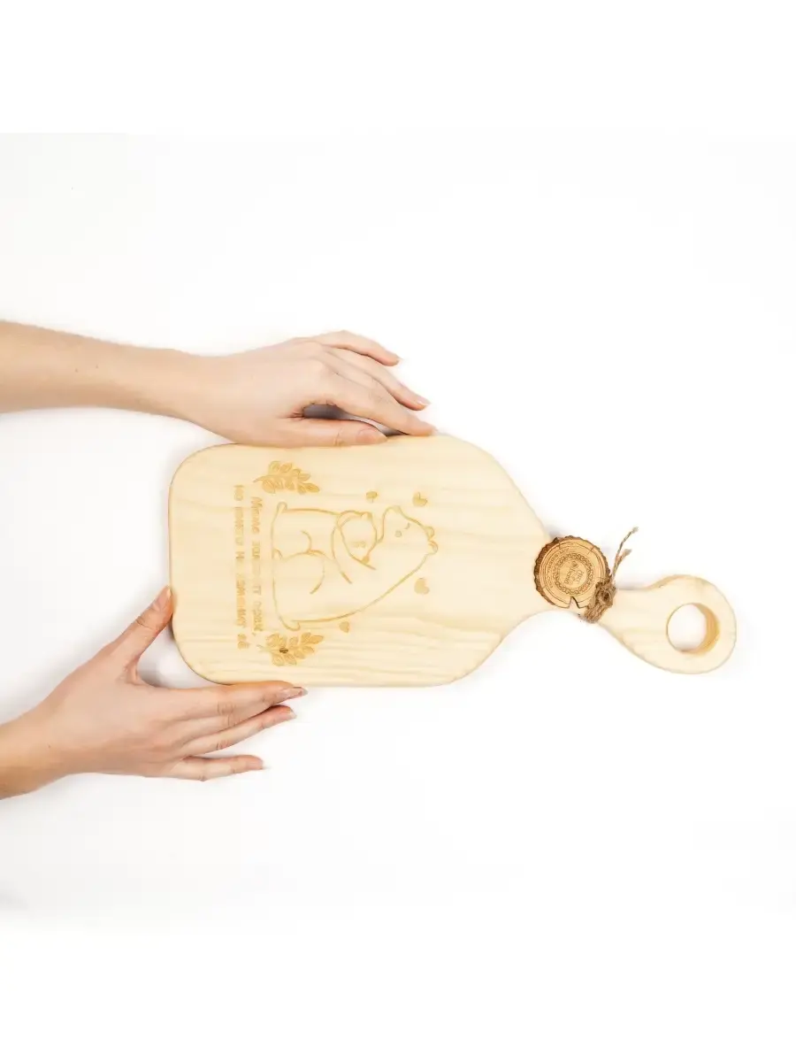 Разделочная деревянная доска из древесины сибирского кедра для мяса с гравировкой "Мама заменит всех, но никто не заменит ее". Мы предлагаем вам деревянные разделочные доски, изготовленные из цельного бруска дерева Сибирский кедр. Они обладают массой положительных качеств: ножи не тупятся, долговечные, прочные, устойчивы к повреждениям и перепадам температуры, подходят для разделывания больших кусков мяса, а самое главное, а самое главное, кедр обладает антибактериальными свойствами, и бактерии, попадая в волокна доски, не размножаются, а погибают. Ну и, конечно же, частички разделочной доски, попадая в организм человека не причинят вреда.