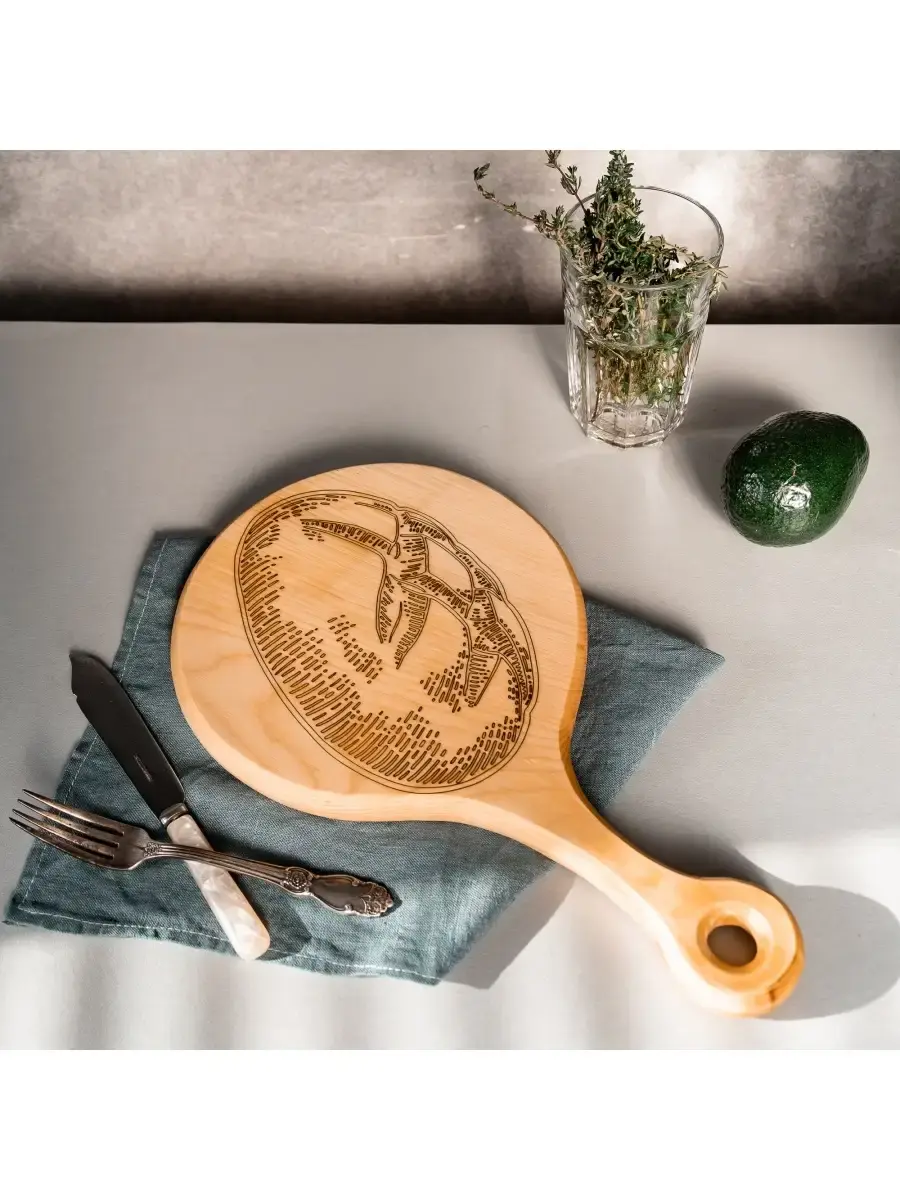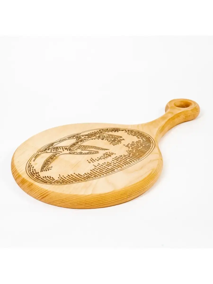 Деревянная разделочная доска из цельного куска дерева Сибирский Кедр! Мы предлагаем вам деревянные разделочные доски, изготовленные из цельного бруска дерева Сибирский кедр. Они обладают массой положительных качеств: ножи не тупятся, долговечные, прочные, устойчивы к повреждениям и перепадам температуры, подходят для разделывания больших кусков мяса, а самое главное, а самое главное, кедр обладает антибактериальными свойствами, и бактерии, попадая в волокна доски, не размножаются, а погибают. Ну и, конечно же, частички разделочной доски, попадая в организм человека не причинят вреда. Деревянные доски имеют различную форму со специальным отверстием для крепления на стену. На фото доска разделочная из сибирского кедра. Размер: диаметр 36 см, 20,5 см,ширина высота 2 см.