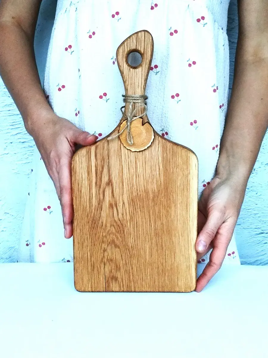 Разделочная сервировочная деревянная доска из массива дуба. Мы предлагаем вам деревянные разделочные доски, изготовленные из цельного массива Сибирского кедра. Они обладают массой положительных качеств: ножи не тупятся, долговечные, прочные, устойчивы к повреждениям и перепадам температуры, подходят для разделывания больших кусков мяса, а самое главное, кедр обладает антибактериальными свойствами, и бактерии, попадая в волокна доски, не размножаются, а погибают. Ну и, конечно же, частички разделочной доски, попадая в организм человека не причинят вреда. Кроме того, сегодня большой популярностью пользуются сервировочные доски из дерева, на которых не режут, а подают блюда. Чаще всего это хлеб, пироги, пиццы, разные сыры, куски мяса с зеленью и овощами. Разделочную доску можно использовать в качестве подарка. Можно преподнести женщине, маме, любимой девушке, бабушке, жене, подруге, учителю, коллеге, врачу, начальнице, сестре на любой праздник: день рождения, юбилей, новый год, 23 февраля, 8 марта, 1 сентября, 14 февраля, на свадьбу, рождество и новоселье.