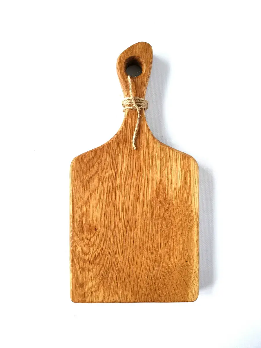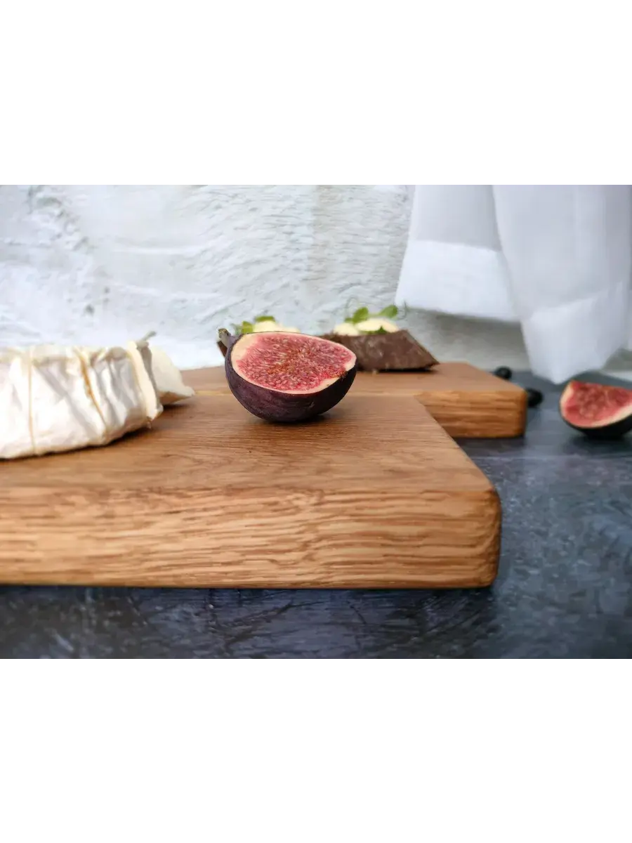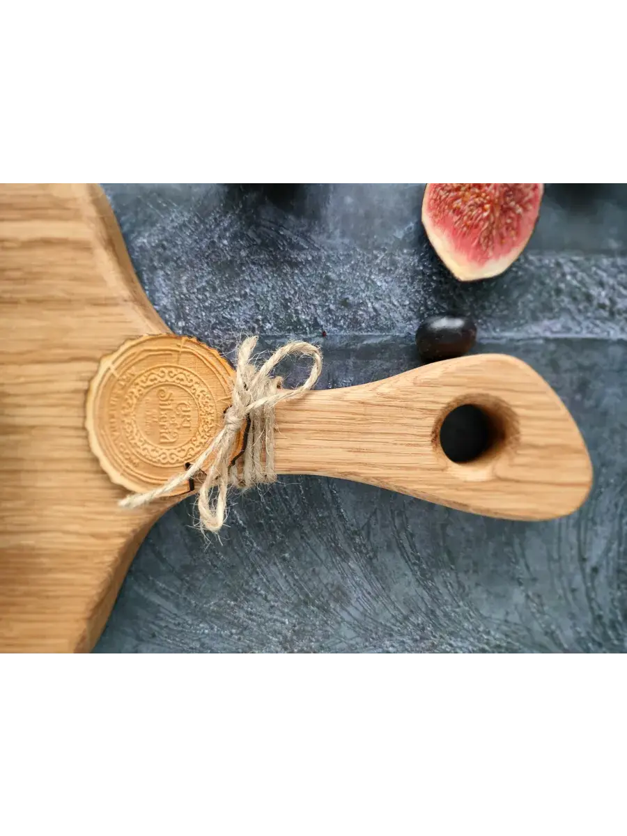 Разделочная сервировочная деревянная доска из массива дуба. Мы предлагаем вам деревянные разделочные доски, изготовленные из массива дуба. Они обладают массой положительных качеств: ножи не тупятся, долговечные, прочные, устойчивы к повреждениям и перепадам температуры, подходят для разделывания больших кусков мяса, а самое главное, дуб обладает антибактериальными свойствами, и бактерии, попадая в волокна доски, не размножаются, а погибают. Ну и, конечно же, частички разделочной доски, попадая в организм человека не причинят вреда. Кроме того, сегодня большой популярностью пользуются сервировочные доски из дерева, на которых не режут, а подают блюда. Чаще всего это хлеб, пироги, пиццы, разные сыры, куски мяса с зеленью и овощами. Разделочную доску можно использовать в качестве подарка. Можно преподнести женщине, маме, любимой девушке, бабушке, жене, подруге, учителю, коллеге, врачу, начальнице, сестре на любой праздник: день рождения, юбилей, новый год, 23 февраля, 8 марта, 1 сентября, 14 февраля, на свадьбу, рождество и новоселье.