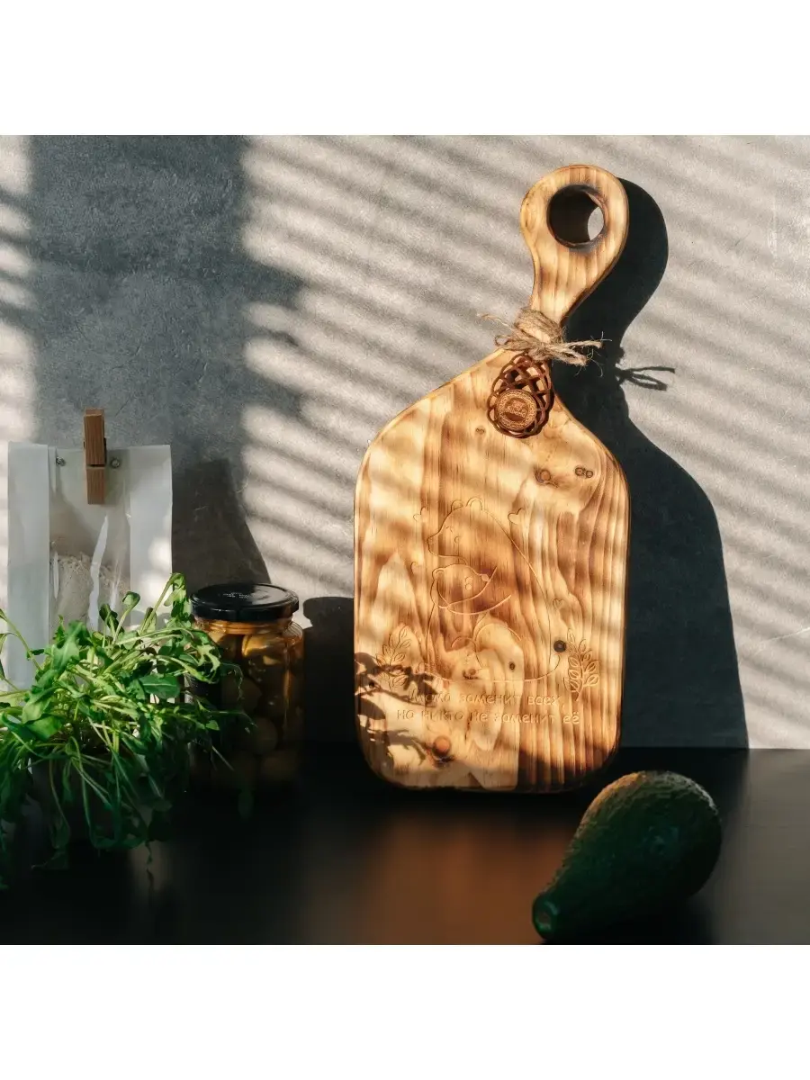 Разделочная деревянная доска из древесины сибирского кедра для мяса с гравировкой "Мама заменит всех, но никто не заменит ее". Мы предлагаем вам деревянные разделочные доски, изготовленные из цельного бруска дерева Сибирский кедр. Они обладают массой положительных качеств: ножи не тупятся, долговечные, прочные, устойчивы к повреждениям и перепадам температуры, подходят для разделывания больших кусков мяса, а самое главное, а самое главное, кедр обладает антибактериальными свойствами, и бактерии, попадая в волокна доски, не размножаются, а погибают. Ну и, конечно же, частички разделочной доски, попадая в организм человека не причинят вреда.
