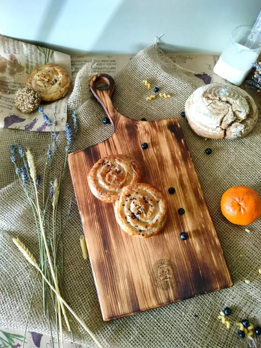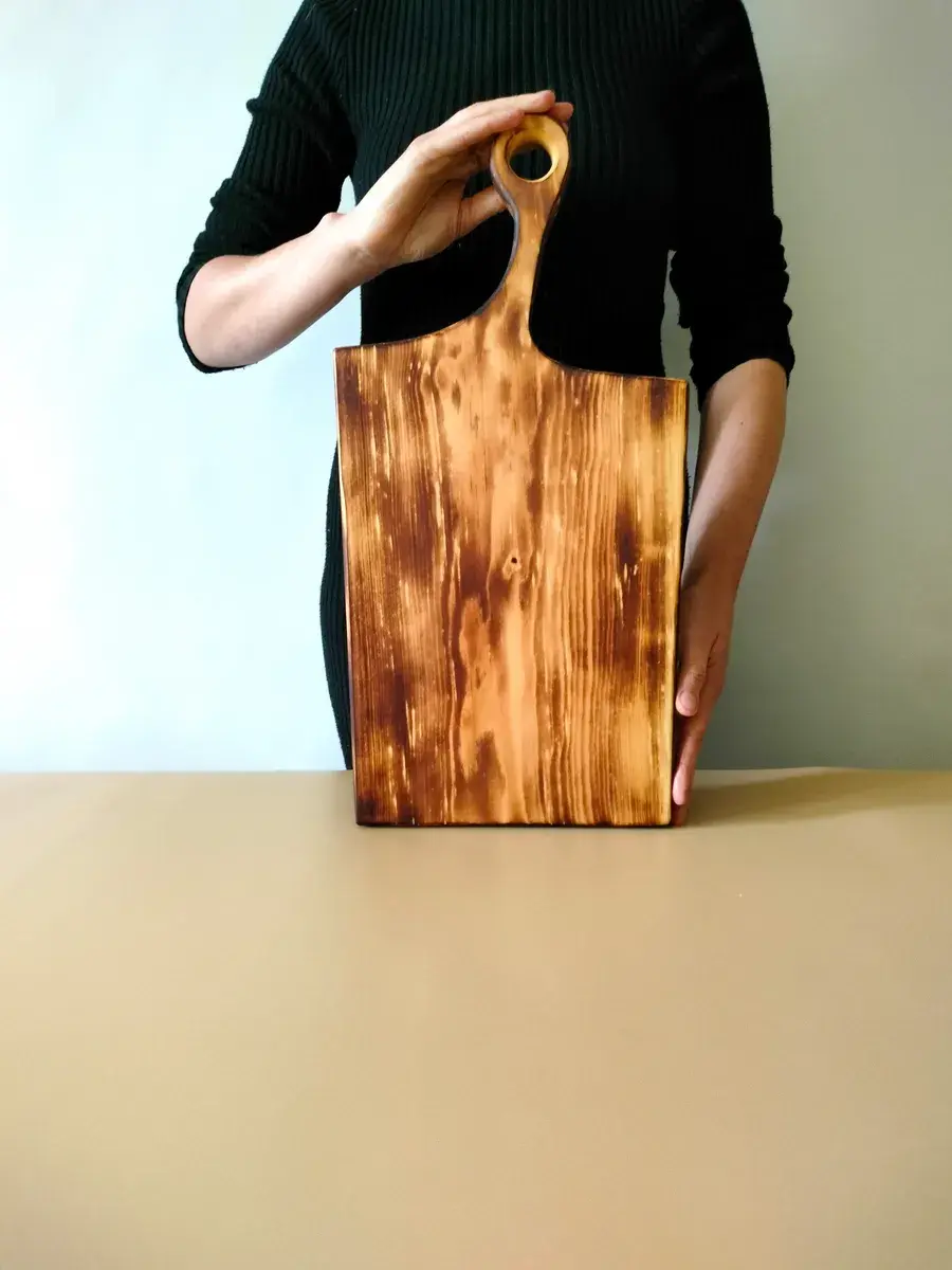 Деревянная разделочная доска из спила древесины сибирского кедра. Есть предметы, без которых не обойтись в домашнем хозяйстве. Разделочная – одна из них. Доска обработана натуральным маслом с пчелиным воском, которое защищает дерево от внешних воздействий. Экологичную разделочную доску можно использовать для: сырого мяса, рыбы, хлеба, овощей и фруктов. Доска обладает массой положительных качеств: ножи не тупятся, доски из кедра долговечные, прочные, устойчивы к повреждениям и перепадам температуры. Подходят для разделывания больших кусков мяса, а самое главное, кедр обладает антибактериальными свойствами, и бактерии, попадая в волокна доски, не размножаются, а погибают. Доска имеет специальное отверстие, которое, пригодится для того, чтобы повесить доску на стену. Доска содержит следы короеда, что придает ей большую оригинальность .Доску можно использовать в роли менажницы для подачи и сервировки блюд, она отлично впишется в любой интерьер и будет дополнять его своей уникальностью и стилем. Станет отличным подарком для повара, любителя готовить, близкого человека или просто качественным универсальным подарком. Дорогие покупатели, просим Вас обратить внимание! Каждая деревянная доска из спила имеет уникальную форму, которая может незначительно отличаться от фотографии. Возможно наличие сучков. Длина доски 50 см, ширина от 23 до 25 см. Цвет "обжиг". Не замачивать. Не использовать в посудомоечной машине. После использования тщательно просушивать бумажными полотенцами.