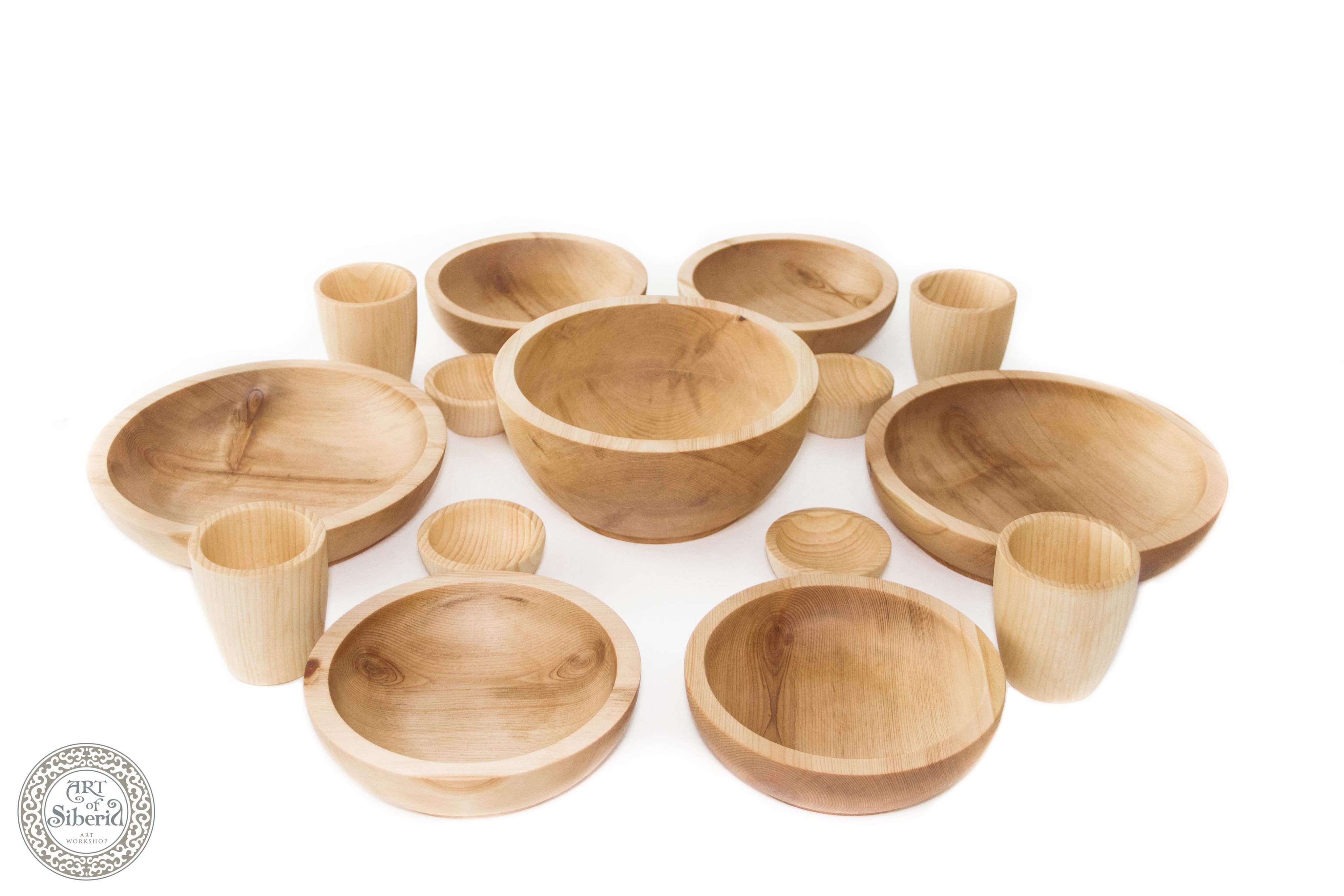 Набор посуды из Сибирского кедра на 4 персоны.