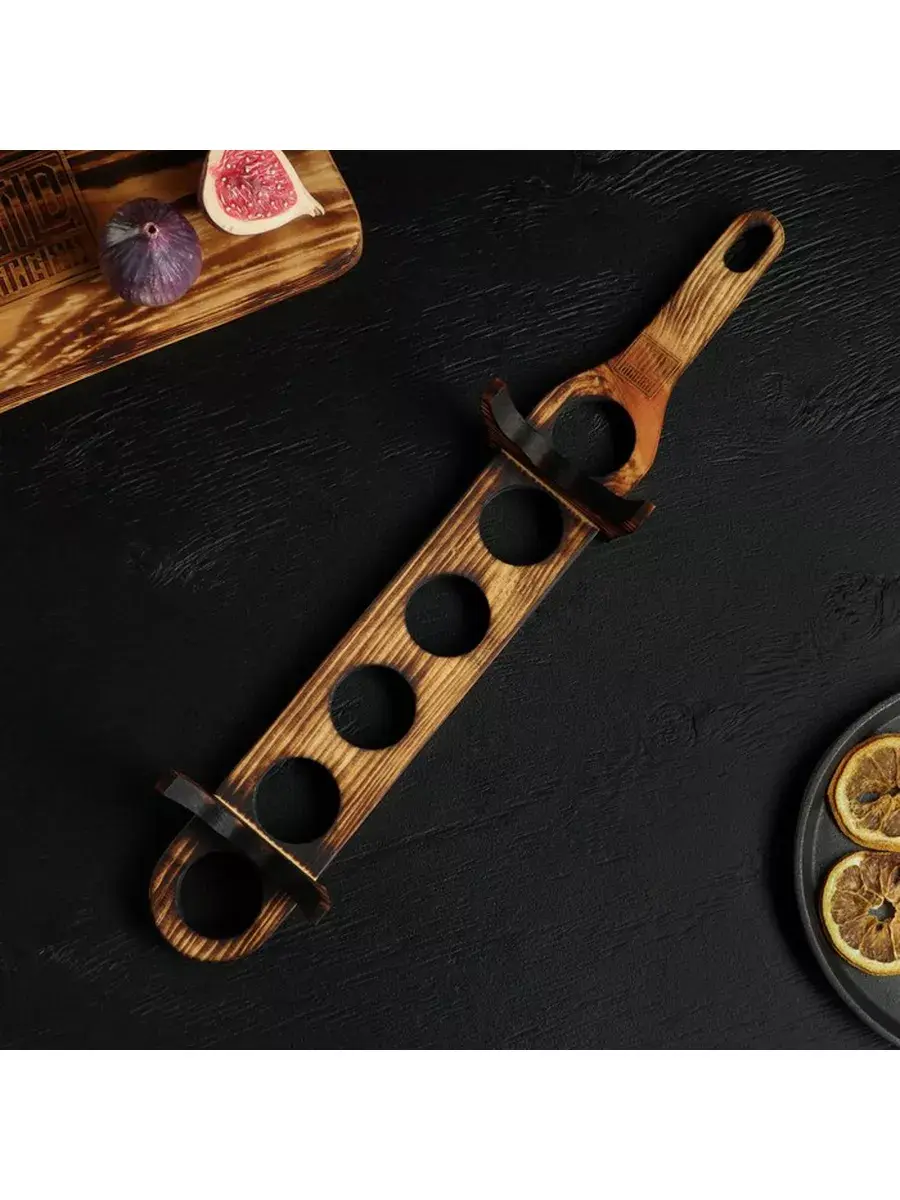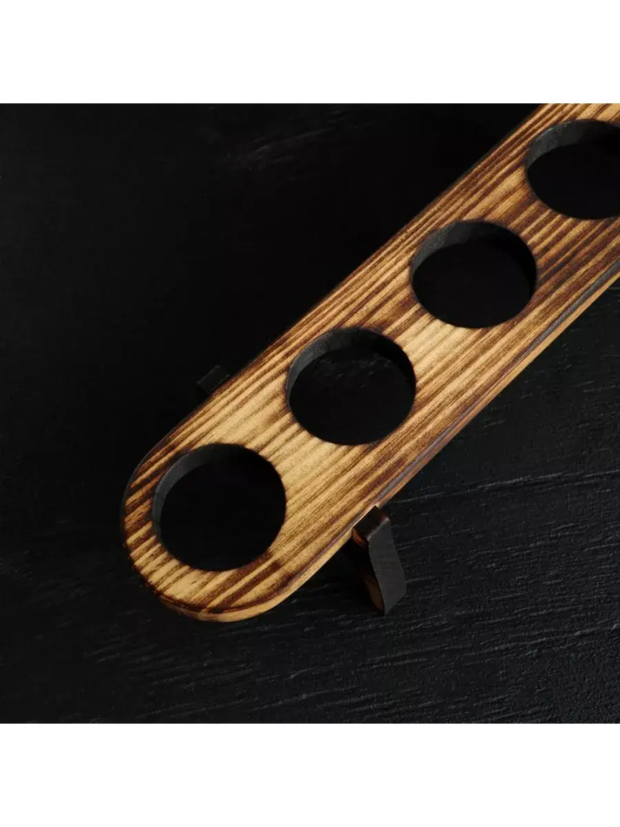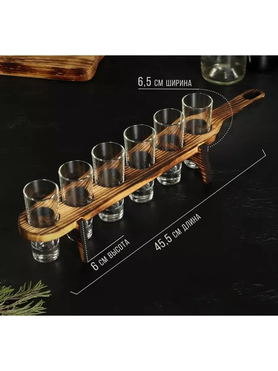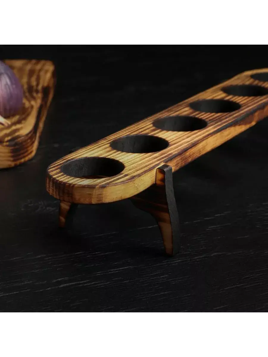 Деревянная шотница в обжиге для подачи с 6 стопками.