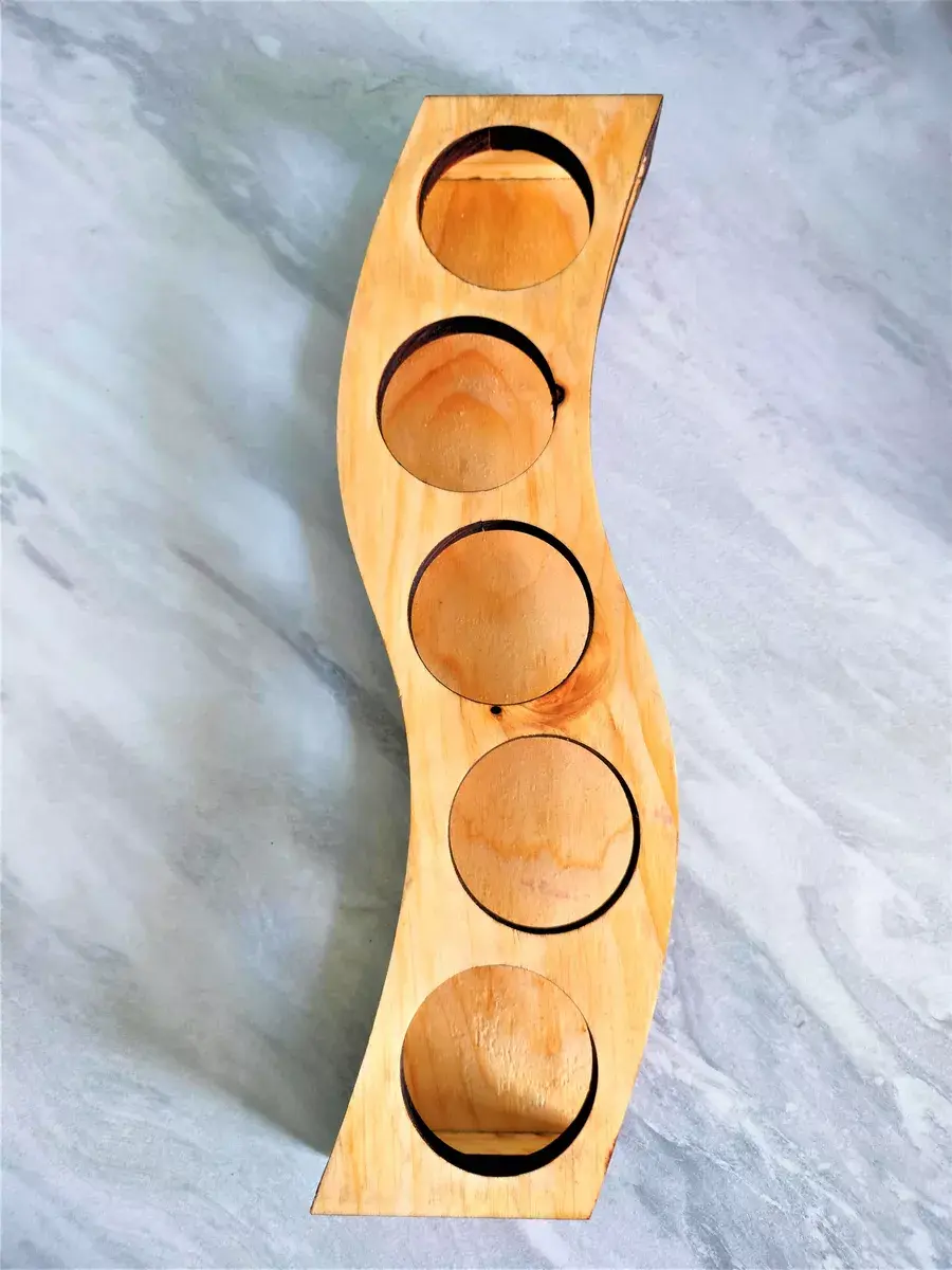 Шотсеты, шотницы, подставки под шоты - все это описывает один продукт, который сейчас необычайно популярен. Стильная и необычная подача напитков точно запомнится Вашим друзьям, коллегам, посетителям и точно способна вызвать восторг. Шотница рассчитана на 5 стопок, диаметром не более 4,5 см.Общие размеры 31Х10X3.8см. Изделие обработано маслом на основе пчелиного воска.
