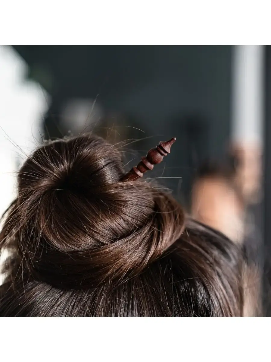 Представляем вам заколку-шпильку для волос из красного дерева. Заколка универсальна, ей легко собрать волосы в пучок. Смотрится очень эффектно и не травмирует волосы. Подойдет для повседневной носки, а также для праздничной причёски. Не окисляется от длительного контакта с волосами! Безопасные концы! Уникальная текстура дерева! Ручная работа! Легкая и изящная! Размер: Длина 20 см., диаметр 1 см.