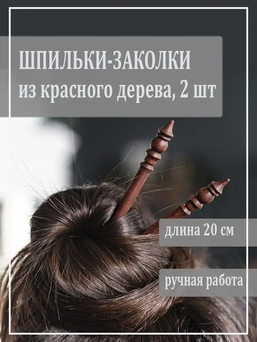 Представляем вам заколки - шпильки для волос из красного дерева. Эти заколки универсальны, ими легко собрать волосы в пучок. Смотрятся очень эффектно и не травмируют волосы. Подойдут для повседневной носки, а также для праздничной причёски. Не окисляется от длительного контакта с волосами! Безопасные концы! Уникальная текстура дерева! Ручная работа! Легкая и изящная! Размер: Длина 20 см., диаметр 1 см. 2 шт.