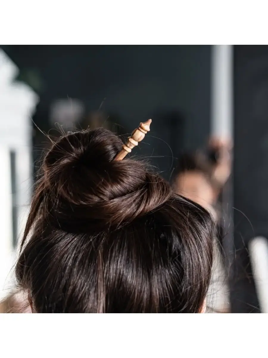 Представляем вам заколку-шпильку для волос из вишни. Заколка универсальна, ей легко собрать волосы в пучок. Смотрится очень эффектно и не травмирует волосы. Подойдет для повседневной носки, а также для праздничной причёски. Не окисляется от длительного контакта с волосами! Безопасные концы! Уникальная текстура дерева! Ручная работа! Легкая и изящная! Размер: длина 20 см., диаметр 1 см.