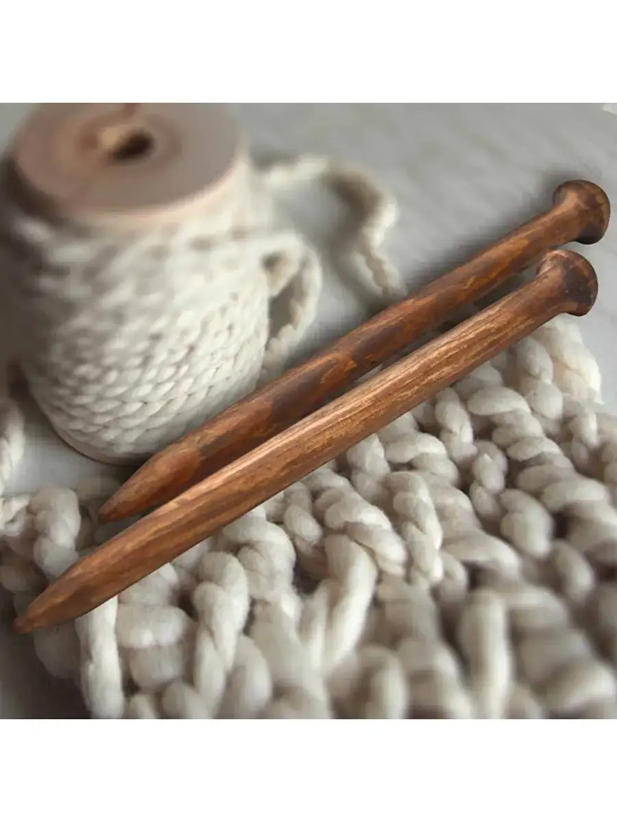 Гигантские Спицы для Толстой Пряжи из Дерева 20мм/400мм. Оригинальный и уникальный продукт из Сибири! Очень легкие и не вызывают аллергии! Экологичные, без содержания вредных примесей! Прочные, подходят новичкам и для использования детьми!!! Гладкие! Тщательно отполированы! Рабочие коники достаточно острые, при этом не ранят нежную кожу! Словно созданы самой природой для легкого вязания, с ними Ваши вещи будут великолепны! Идеально подходят для толстой пряжи! Отличный выбор для тех, кому хочется вязать большие вещи, но не хватает терпения на длительную работу. Вещи крупной вязки выглядят эффектно, современно, оригинально и дорого!