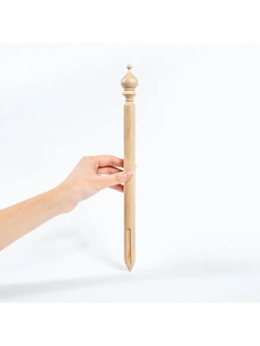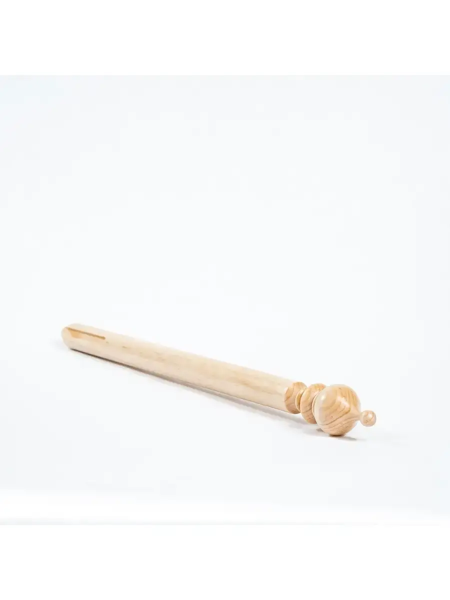 Брумстик (палочка) для перуанского вязания диаметром 20 мм. Стиль вязания "Брумстик" привлекает многих вязальщиц своей красотой и простотой. С помощью него можно создавать уникальные вещи, которые точно будут выделяться своей необычной текстурой. Техника брумстик появилась в Южной Америке, в Перу, поэтому ее еще называют перуанской. Эта техника является одной из самых древних, претендует на звание самой самобытной. Перуанское вязание сегодня популярно по всему миру. Оно отличается малой деформацией изделий, небольшим расходом пряжи и быстротой вязания. Для облегчения перуанского вязания мы специально изготовили брумстик. Выполнен из древесины сибирского кедра со специальной прорезью, для легкого снимания петель. Размер: длина 350 мм., диаметр 20 мм.