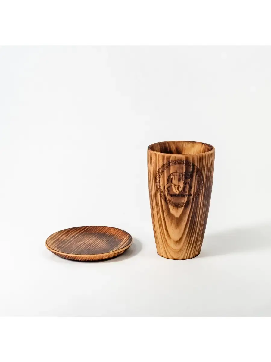 **Деревянный пивной набор из сибирского кедра с блюдцем -** незаменимый атрибут каждого ценителя напитка! Пивной набор - это уникальный подарок, который придется по вкусу каждому мужчине, особенно когда выполнен вручную и отличается стильным декором. Дерево смягчает грубый вкус пива, добавляет ему структуру и сложность, напиток приобретает незабываемый аромат лесного духа. Стакан из сибирского кедра сохраняет все вкусовые качества напитка. В набор входит специальная тарелочка для закуски. Туда можно положить орешки, сыр или другие вкусности, которые вы любите. **Размер:** Стакан: высота 15 см., диаметр горловины 9,5 см. диаметр основания 6,5 см. Блюдце: диаметр 12 см., высота 1,7 см.
