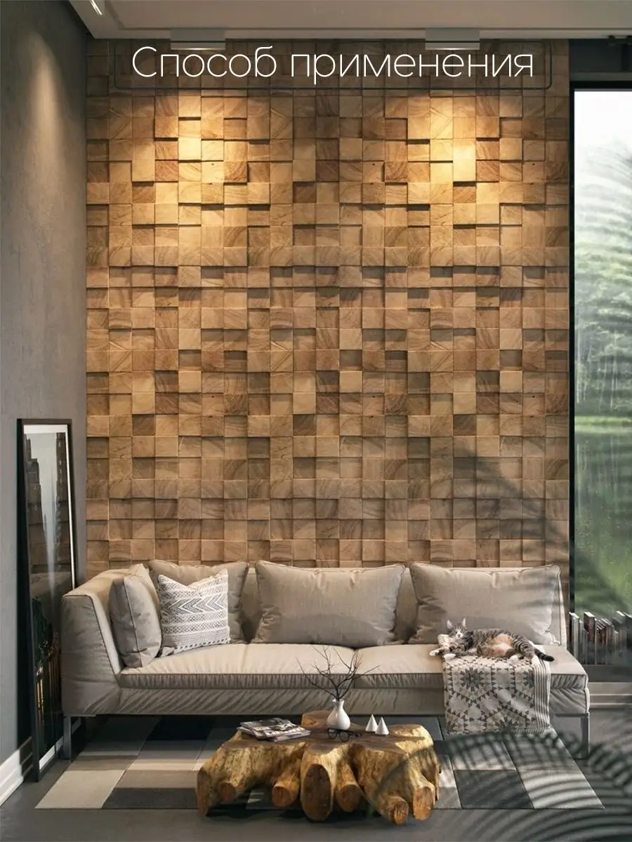 3D панели для стен стиль лофт из натурального Сибирского кедра - отличный способ оригинально выделить любую зону, стену и потолок. Такие панели отлично вписываются в интерьер. Отделка стены или потолка экологичными панелями из кедра дополнит и добавит объема в помещение. Отделочная панель из дерева полностью состоит из кедра. Она обладает бактерицидными, антимикробными свойствами, аромат кедра, который будет доноситься по всей комнате, способен оздоравливать воздух, придавая ему целебные качества. Благодаря тому, что каждый элемент панели уникален, можно создать совершенно разные панно, любого размера и с эффектом разлетающихся деталей, устанавливая, их на некотором расстоянии друг от друга. Мозаика для стен отличный способ замаскировать отверстия или иные недочеты вашего интерьера. Панели можно покрыть бесцветным маслом, либо покрасить в любой цвет или же оставить как есть без покрытия. В упаковке 50 декоративных элементов. Размер одного декоративного элемента 80х80 мм. Монтаж деревянной мозаики производиться на сухое, твердое, ровное основание, без отслаиваний. При монтаже необходимы только жидкие гвозди. Фото взяты из интернета для демонстрации применения.