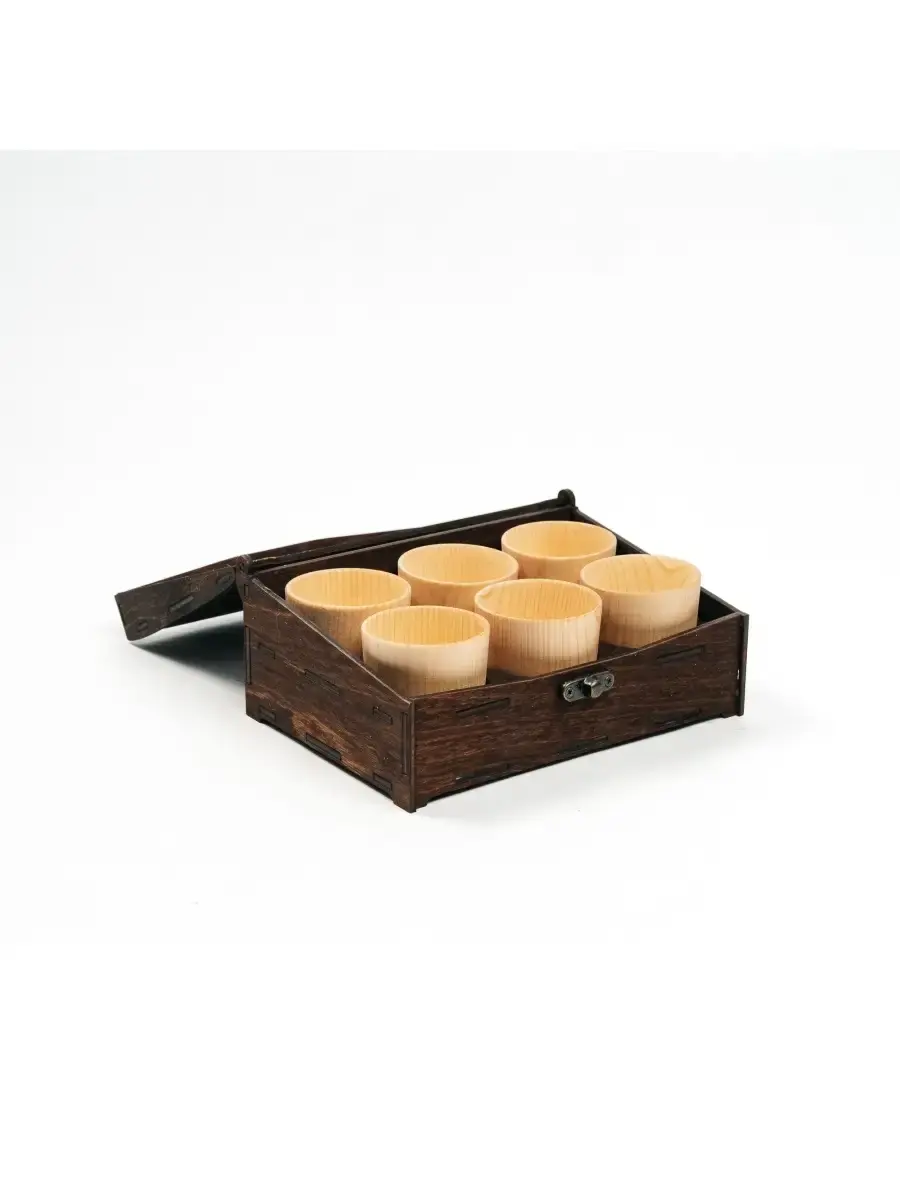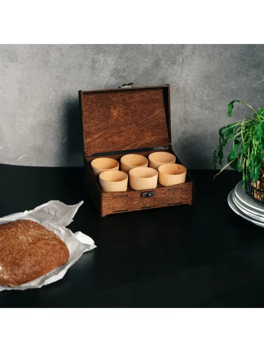 Подарочный короб для стопок - это не просто красивый аксессуар. Подаренный в достойной упаковке набор стопок без сомнения выглядит солидно и дорого, с первого взгляда заявляя о непревзойденной ценности содержимого. Подарочный короб со стопками - это совершенство в деталях! Уникальная упаковка, служащая достойным облачением, не только избавит вас от необходимости продумывать процесс вручения подарка, но и позволит презентовать его максимально эффектно! Размер: Короб: 17,1х12,5х7 см., высота внутреннего пространства: 5,4см диаметр отверстий: 4,9см. Рюмки: высота 5,2 см, диаметр горлышка 5,2 см, диаметр донышка 43 см. (50 мл). 6 штук.