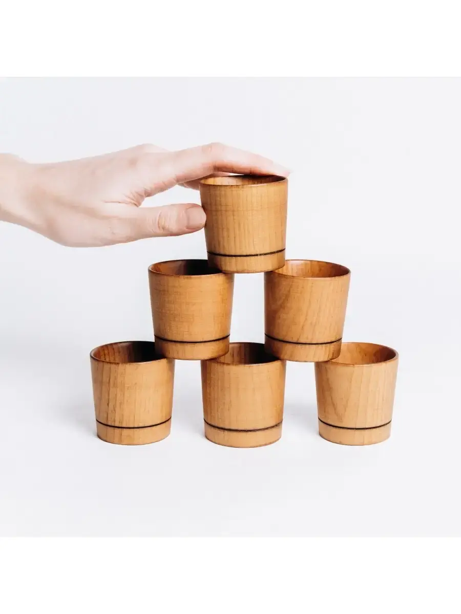 **Набор деревянных стопок из дерева сибирский кедр! Экологически чистый материал, не выделяющий вредных и токсичных веществ! Мы предлагаем вам ощутить вкус и аромат крепких напитков в рюмках из дерева. Эти уникальные стопки ручной работы, сделанные из цельного массива дерева. Древесина кедра смягчает вкус, одновременно усиливая древесные нотки напитка и делая его аромат более насыщенным. Стопки созданы сибирскими мастерами для истинных гурманов и ценителей вкуса! Сохранен натуральный цвет кедра, который придает этим стопкам неповторимый роскошный вид. Для алкогольных напитков, настоек, лекарств и пр. Стопки для дома, сада и бани! Живое дыхание Сибирского дерева.** **Размер одной стопки:** высота 5,2 см,диаметр горлышка 5,2 см, 50 мл. 6 штук.