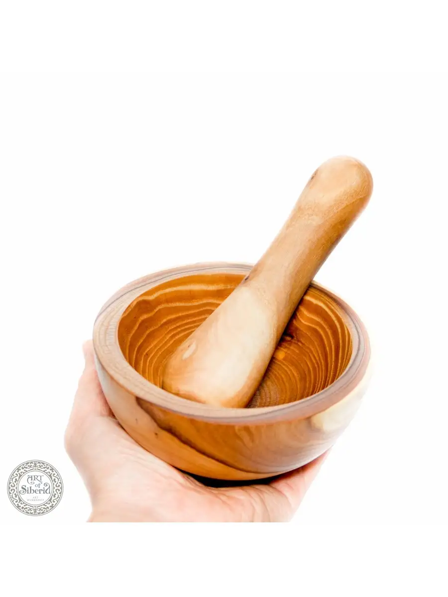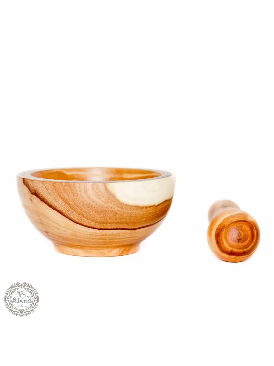 Ступка и пестик из натуральной древесины Сибирского Вяза (Карагач) - отличный подарок для любимого человека, особенно для тех, кто обожает готовить: любимой маме, подруге, мужу, бабушке! Для помола и размельчения трав, специй и пр. Такой набор для измельчения станет вам незаменимым помощником для приготовления разнообразных блюд! Ведь в ступке легко толочь специи и травы. А какой появляется аромат, после измельчения специй! Ваши блюда обязательно оценят. Каждая ступка - неповторима. У нее, как и у пестика натуральный природный узор. Мыть ее - одно удовольствие! Достаточно промыть ступку и пестик теплой водой и насухо обтереть тканью. Легкие и прочные! Ручная работа. Пропитана нашим составом на основе растительного масла, кедровой смолы и пчелиного воска. Сохранены все натуральные свойства древесины. Размер: ступка - высота 65 мм, диаметр 130мм. Пестик 170х35 мм.