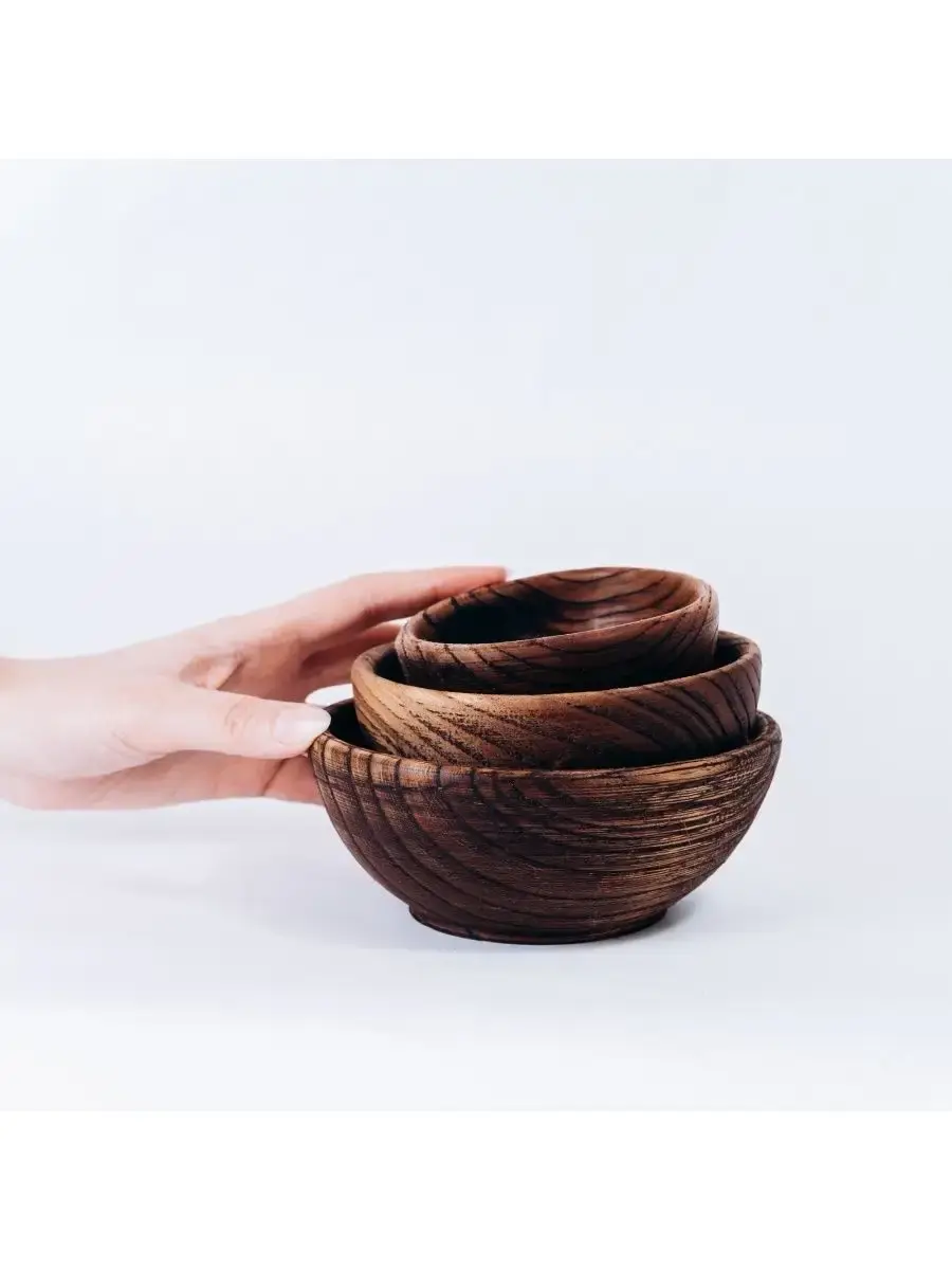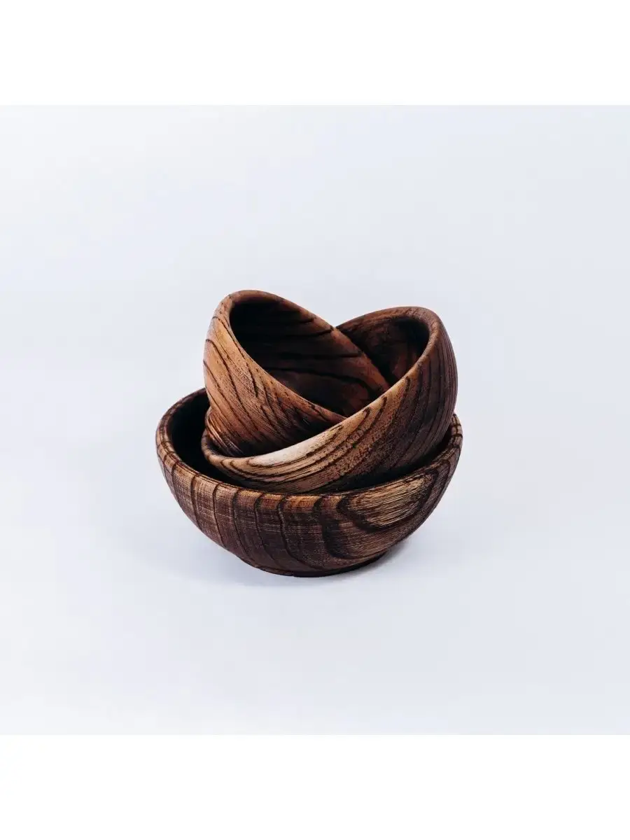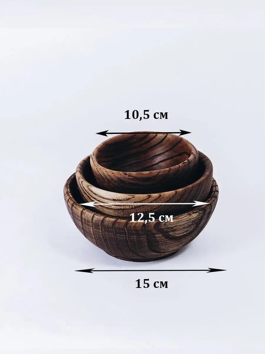 Набор текстурированных чаш из сибирского вяза (карагач). Чаши выполнены в деревенском стиле. Обработаны специальной щеткой, для создания эффекта искусственно состаренной посуды (броширование). Подходят для орехов, меда, конфет и прочих снеков. Пропитаны пчелиным воском, растительным маслом и кедровой смолой. Супер эко продукт. Ручная работа. Размер: большая тарелка диаметр 15см., высота 6,3 см., средняя диаметр 12,5 см., высота 6 см., малая диаметр 10,5 см., высота 6 см.