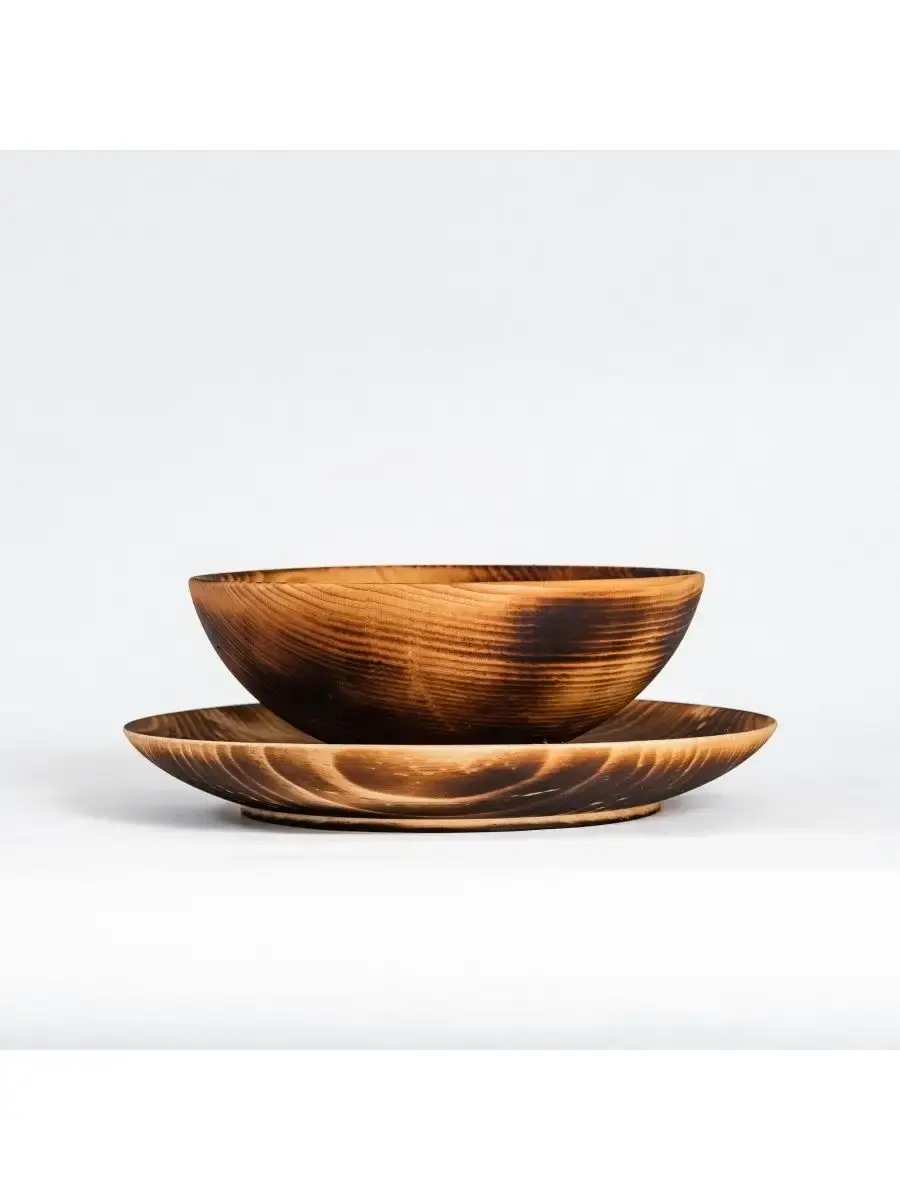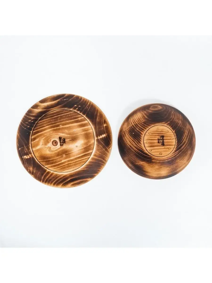 Набор тарелок из натурального дерева сибирский кедр серии "ЛОТОС". Наша посуда из кедра имеет красивую текстуру, приятный оттенок, выделяет тонкий аромат, дезинфицирующий воздух помещений. Она обладает бактерицидными, антимикробными свойствами, аромат кедра способен оздоравливать воздух, придавать ему целебные качества. Велико санитарно-гигиеническое и лечебно-профилактическое действие кедровой посуды. Покрыта составом из пчелиного воска, кедровой смолы и растительного масла. Пригодна для пищевых продуктов, как для холодной, так и для горячей пищи. Абсолютно экологичный продукт. Перед использованием обязательно промыть теплой проточной водой, чтоб смыть остатки масла и морилки. Изделие может стать чуть светлее. Первое время возможно оставление следов от морилки, поэтому лучше для протирания использовать бумажные полотенца. Размер: плоская тарелка диаметр 20 см., высота 2,5 см; глубокая тарелка диаметр 16 см., высота 6 см.