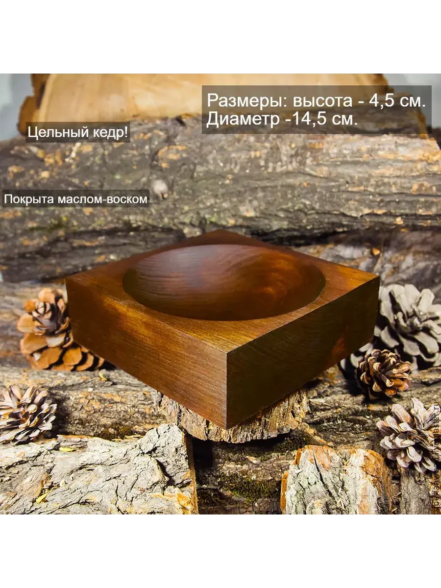 Чаша квадратная из Сибирского Кедра. Любые изделия из кедра несут в себе энергию и живительную силу самой природы - поэтому они ценятся теми, кто заботится о своем здоровье.Наша посуда из кедра имеет красивую текстуру, приятный оттенок, выделяет тонкий аромат, дезинфицирующий воздух помещений. Она обладает бактерицидными, антимикробными свойствами, аромат кедра способен оздоравливать воздух, придавать ему целебные качества. Пропитана нашим составом на основе растительного масла, кедровой смолы и пчелиного воска. Перед использованием обязательно промыть теплой проточной водой, чтоб смыть остатки масла и морилки. Изделие может стать чуть светлее. Первое время возможно оставление следов от морилки, поэтому лучше для протирания использовать бумажные полотенца. Размер: высота 45 мм, диаметр 145 мм.