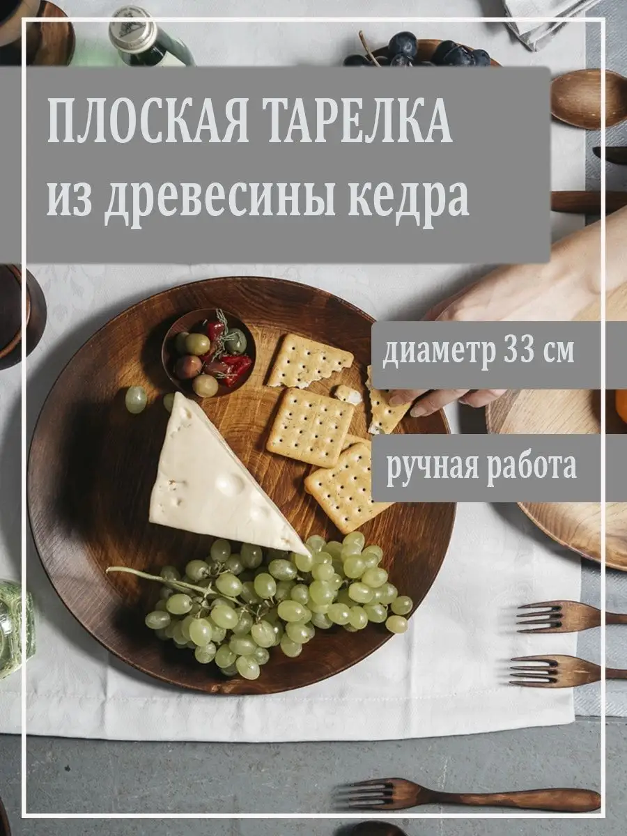 Удобная плоская тарелка из натурального дерева Сибирский Кедр! Вся посуда, которая контактирует с едой, водой, покрывается специальным составом из пчелиного воска, растительного масла и кедровой смолы. Данный состав, попав в толщу древесины, под воздействием кислорода из воздуха полимеризуется, закупоривает поры древесины, делая её водонепроницаемой. Масло создаёт на поверхности изделия прочную и красивую плёнку, воск придает глянец готовым изделиям, а смола - приятный древесный аромат. А в целом этот состав не забивает поры, и дерево продолжает "дышать". **Размер: д**иаметр 33 см., высота 2,5 см.