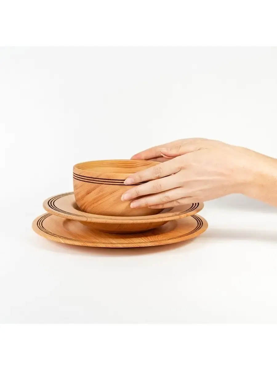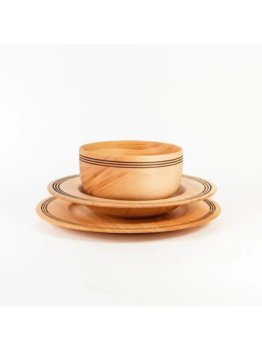 Посуда из серии Панада - это стопроцентно натуральный продукт, созданный из древесины кедра, произрастающего в экологически чистых регионах Алтая и Сибири. Популярность посуды из кедра объясняется как красотой древесины, так и ее лечебными качествами. Наша посуда из кедра имеет красивую текстуру, приятный оттенок, выделяет тонкий аромат, дезинфицирующий воздух помещений. Она обладает бактерицидными, антимикробными свойствами, аромат кедра способен оздоравливать воздух, придавать ему целебные качества. Покрыта составом из пчелиного воска, кедровой смолы и растительного масла. Пригодна для пищевых продуктов, как для холодной, так и для горячей пищи. Перед использованием обязательно промыть теплой проточной водой, чтоб смыть остатки масла и морилки. Изделие может стать чуть светлее. Первое время возможно оставление следов от морилки, поэтому лучше для протирания использовать бумажные полотенца. Абсолютно экологичный продукт. Размер: глубокая тарелка: диаметр 15 см., высота 8,5 см.; суповая тарелка: диаметр 24 см., высота 4 см.; тарелка плоская: диаметр 26,5 см., высота 2,3 см.