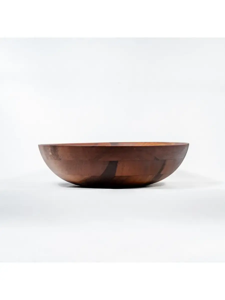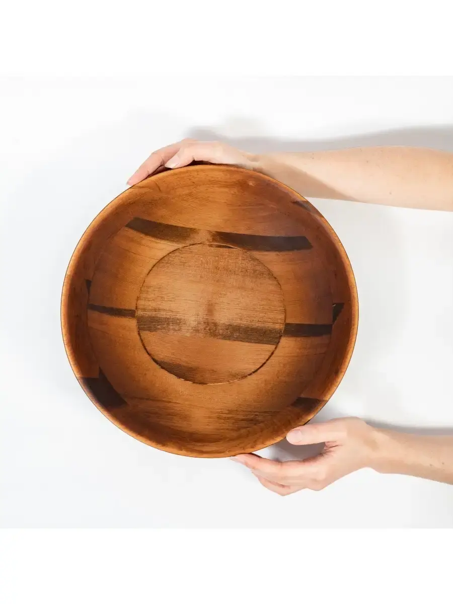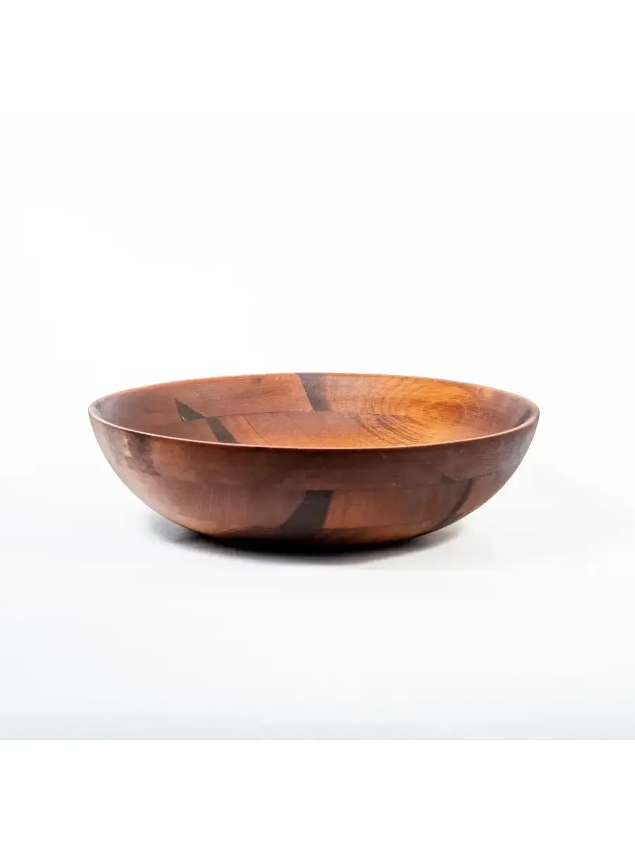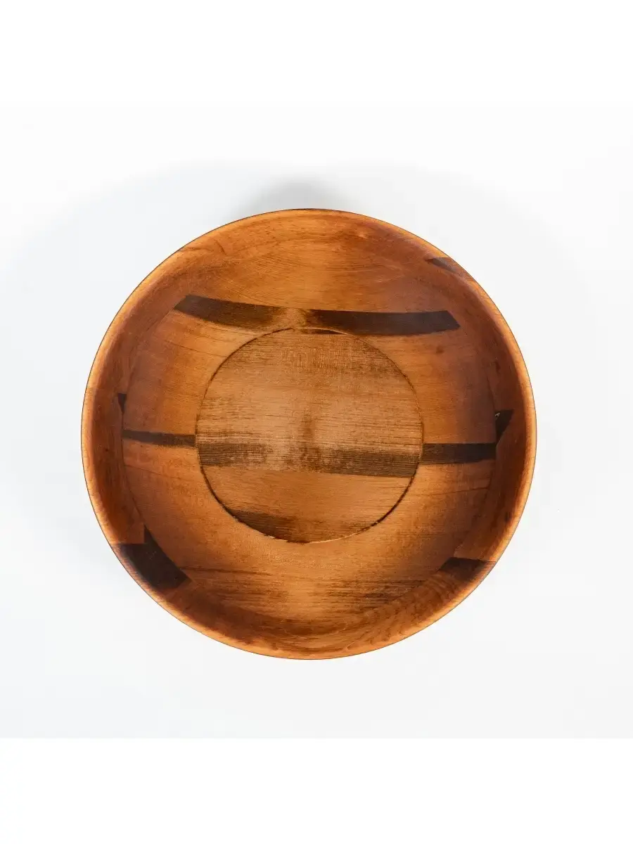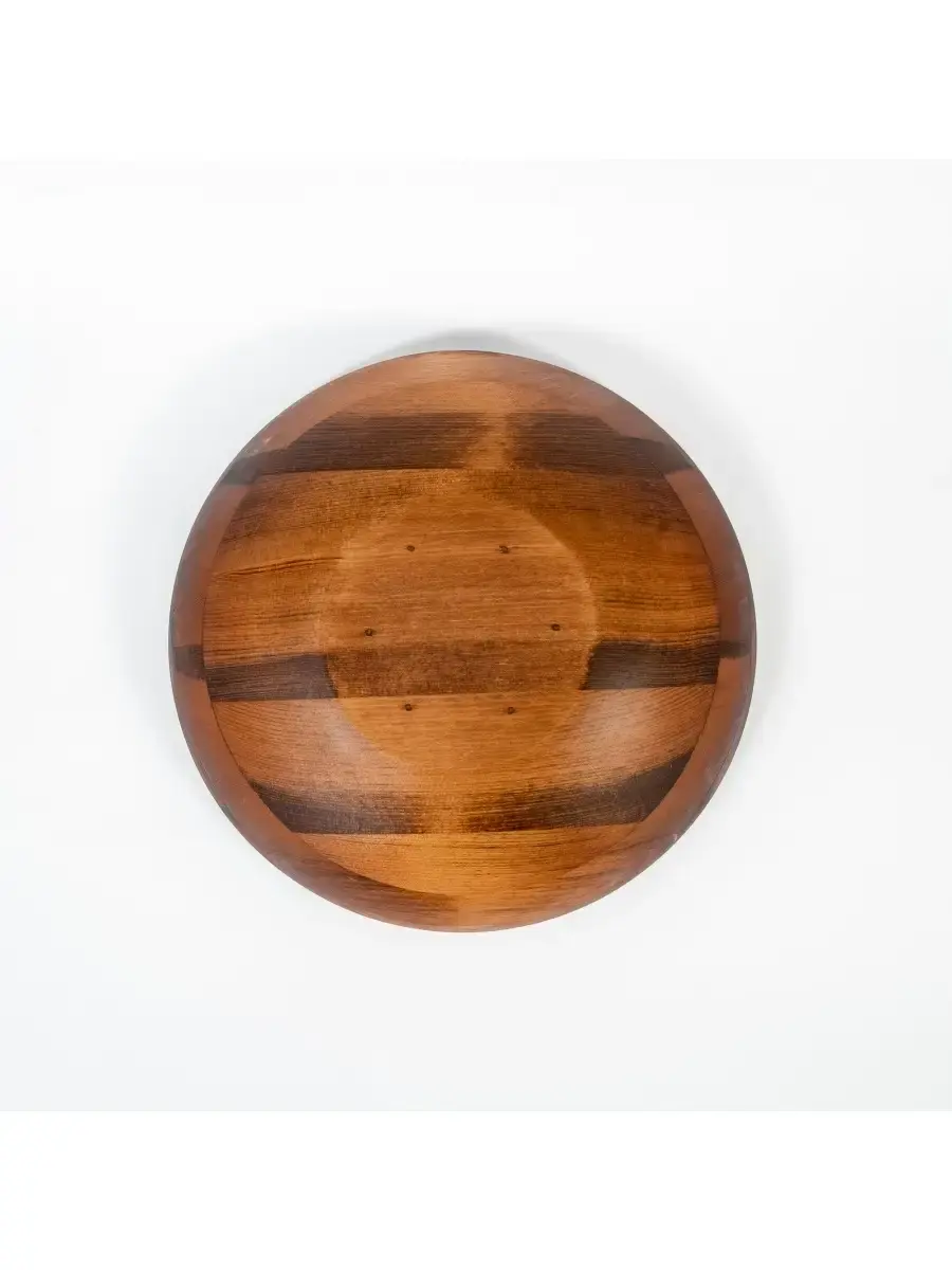 Деревянная глубокая тарелка (салатник) из кедра! Наша посуда - это стопроцентно натуральный продукт, созданный из древесины кедра, произрастающего в экологически чистых регионах Алтая и Сибири. Популярность посуды из кедра объясняется как красотой древесины, так и ее лечебными качествами. Наша посуда из кедра имеет красивую текстуру, приятный оттенок, выделяет тонкий аромат, дезинфицирующий воздух помещений. Она обладает бактерицидными, антимикробными свойствами, аромат кедра способен оздоравливать воздух, придавать ему целебные качества. Покрыта составом из пчелиного воска, кедровой смолы и растительного масла. Пригодна для пищевых продуктов, салатов, фруктов, овощей. Чаша имеет не только практическое применение, но органично гармонизирует с любым помещением. **Размер:** диаметр 30 см, высота 8,5 см.