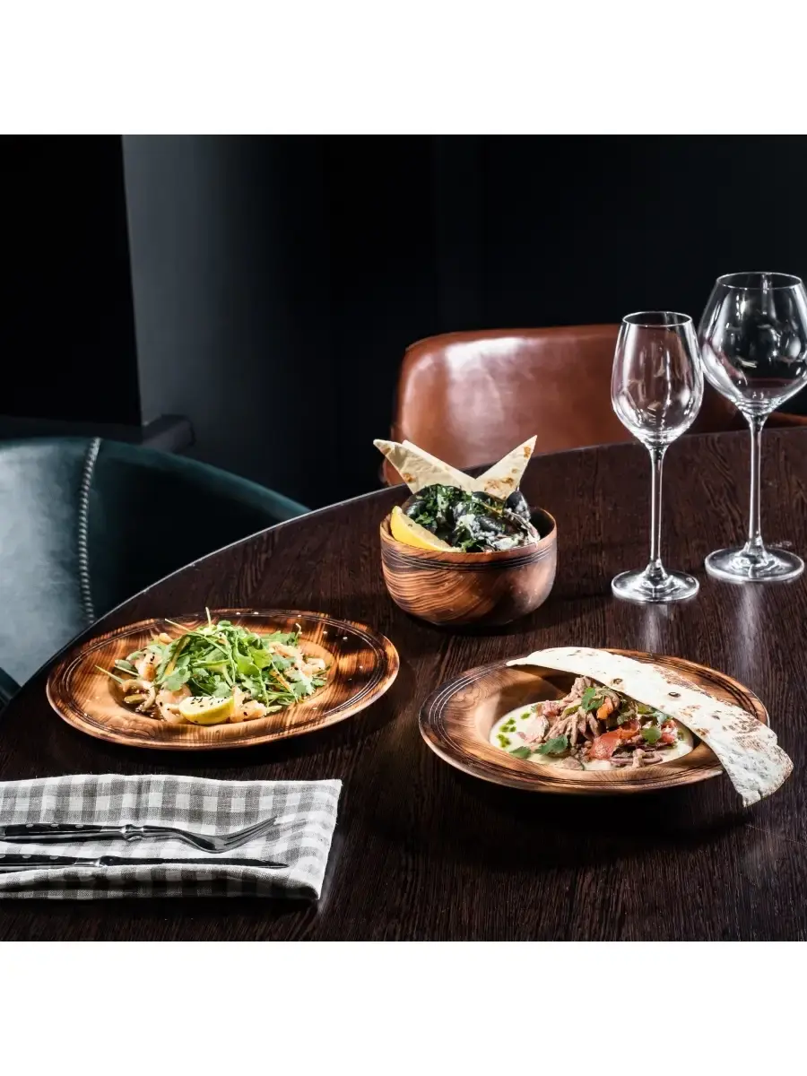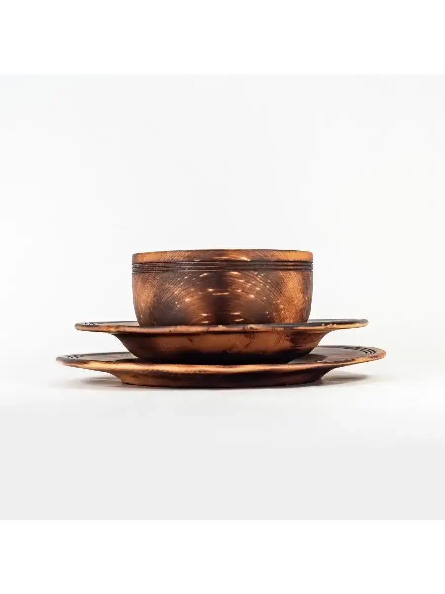 Посуда из серии Панада - это стопроцентно натуральный продукт, созданный из древесины кедра, произрастающего в экологически чистых регионах Алтая и Сибири. Популярность посуды из кедра объясняется как красотой древесины, так и ее лечебными качествами. Наша посуда из кедра имеет красивую текстуру, приятный оттенок, выделяет тонкий аромат, дезинфицирующий воздух помещений. Она обладает бактерицидными, антимикробными свойствами, аромат кедра способен оздоравливать воздух, придавать ему целебные качества. Покрыта составом из пчелиного воска, кедровой смолы и растительного масла. Пригодна для пищевых продуктов, как для холодной, так и для горячей пищи. Перед использованием обязательно промыть теплой проточной водой, чтоб смыть остатки масла и морилки. Изделие может стать чуть светлее. Первое время возможно оставление следов от морилки, поэтому лучше для протирания использовать бумажные полотенца. Абсолютно экологичный продукт. Размер: глубокая тарелка: диаметр 15 см., высота 8,5 см.; суповая тарелка: диаметр 24 см., высота 4 см.; тарелка плоская: диаметр 26,5 см., высота 2,3 см.