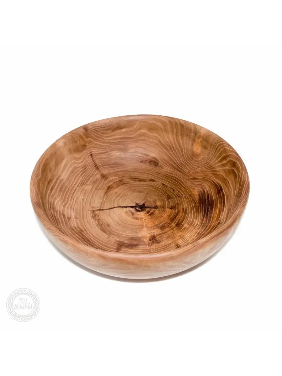 Деревянная глубокая тарелка из древесины вяза (карагач) 38 см. Большая глубокая чаша из Сибирского вяза. Ручная работа. Покрыта льняным маслом с воском. Сохранены все натуральные свойства древесины. Рекомендуется для любых продуктов питания. Размер: высота 14 см., диаметр 38 см.
