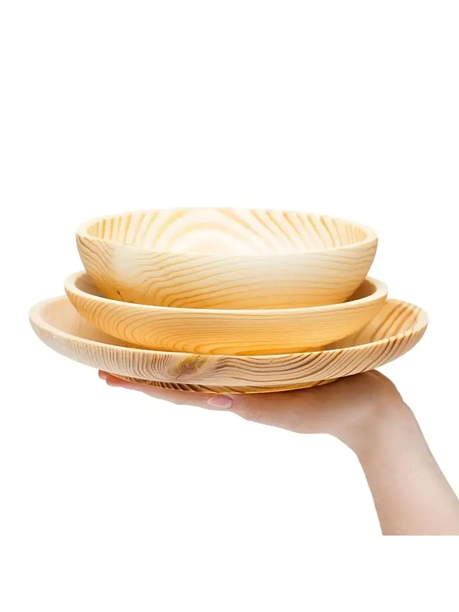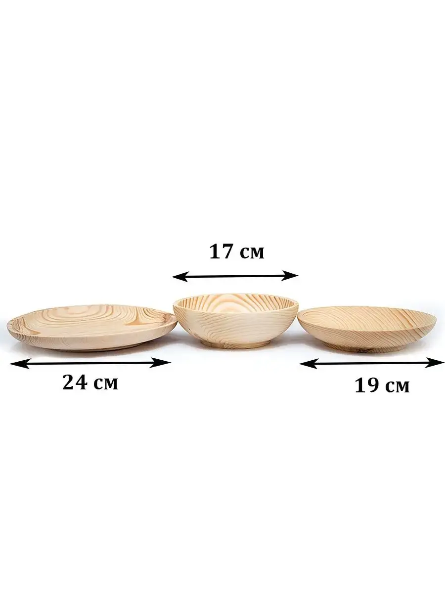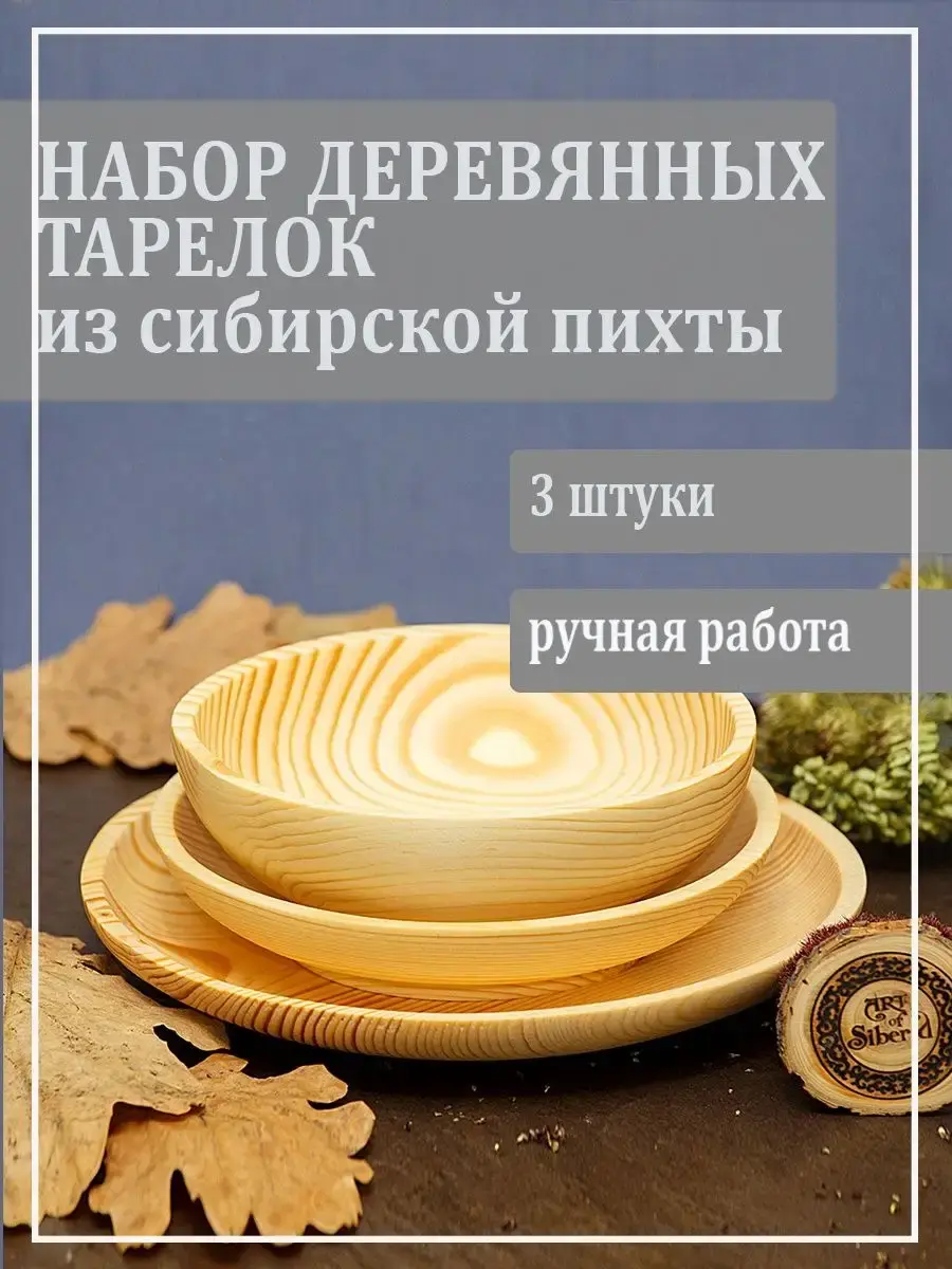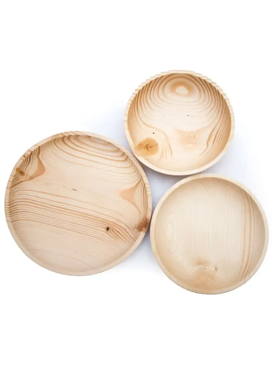 Набор тарелок серии "ABIES". Ручной работы из натурального дерева Сибирской Пихты! ВОЗМОЖНО НАЛИЧИЕ "ЖИВЫХ" СУЧКОВ! Пропитан нашим составом на основе растительного масла, кедровой смолы и пчелиного воска.Перед использованием обязательно промыть теплой проточной водой, чтоб смыть остатки масла и морилки. Изделие может стать чуть светлее. Первое время возможно оставление следов от морилки, поэтому лучше для протирания использовать бумажные полотенца. Размер: большая тарелка диаметр 24 см, высота 2,7 см; средняя тарелка диаметр 19 см, высота 4 см; малая тарелка диаметр 17 см, высота 5,5 см.