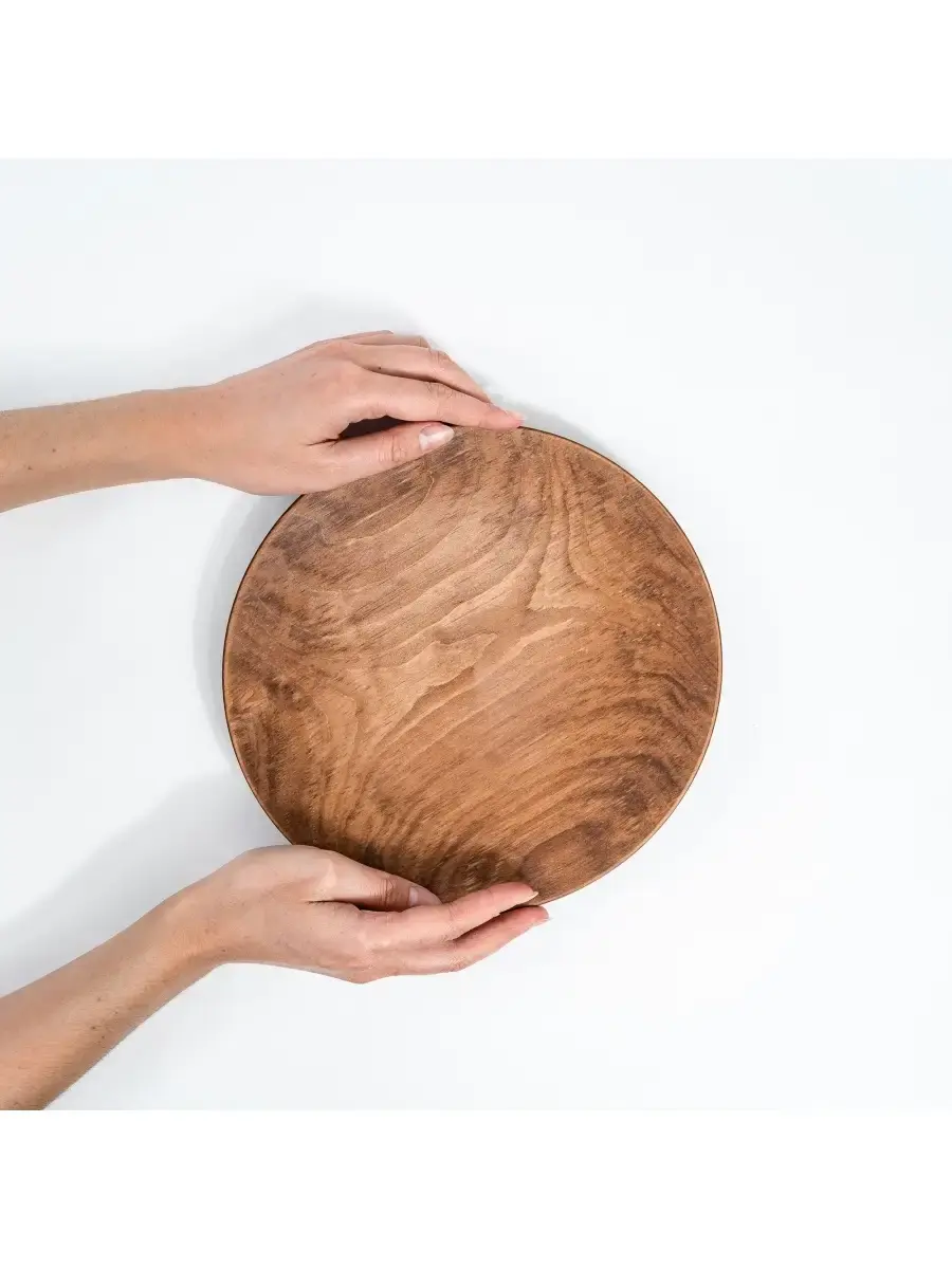 **Деревянная плоская тарелка из сибирского кедра!** Наша посуда - это стопроцентно натуральный продукт, созданный из древесины кедра, произрастающего в экологически чистых регионах Алтая и Сибири. Популярность посуды из кедра объясняется как красотой древесины, так и ее лечебными качествами. Наша посуда из кедра имеет красивую текстуру, приятный оттенок, выделяет тонкий аромат, дезинфицирующий воздух помещений. Она обладает бактерицидными, антимикробными свойствами, аромат кедра способен оздоравливать воздух, придавать ему целебные качества.Покрыта составом из пчелиного воска, кедровой смолы и растительного масла. Пригодна для пищевых продуктов, как для холодной, так и для горячей пищи. Абсолютно экологичный продукт. **Размер:** диаметр 24 см., высота 2,5 см.