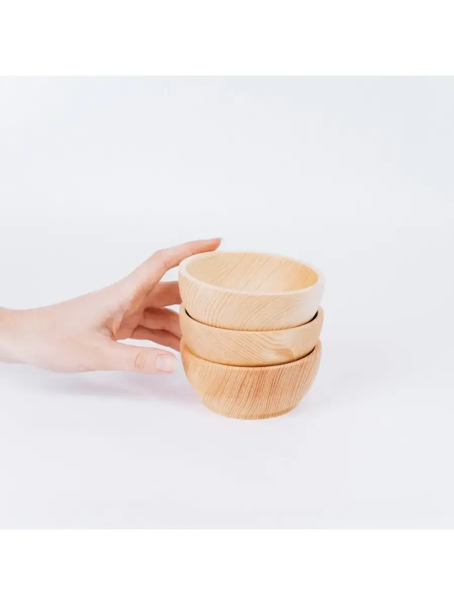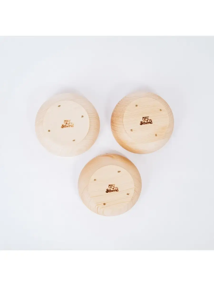 Набор тарелок из натурального дерева сибирский кедр (3 штуки). Покрыта раскаленным пчелиным воском и маслом. Пригодна для пищевых продуктов. Абсолютно экологичный продукт. Древесина кедра придаст пище особый аромат и вкус. И что немаловажно, кедр обладает дезинфицирующим свойством, и продукты в такой тарелке становятся полезней, насыщаясь фитонцидами кедра. Размер одной тарелки: диаметр 10,5 см., высота 4,7 см. 3шт.
