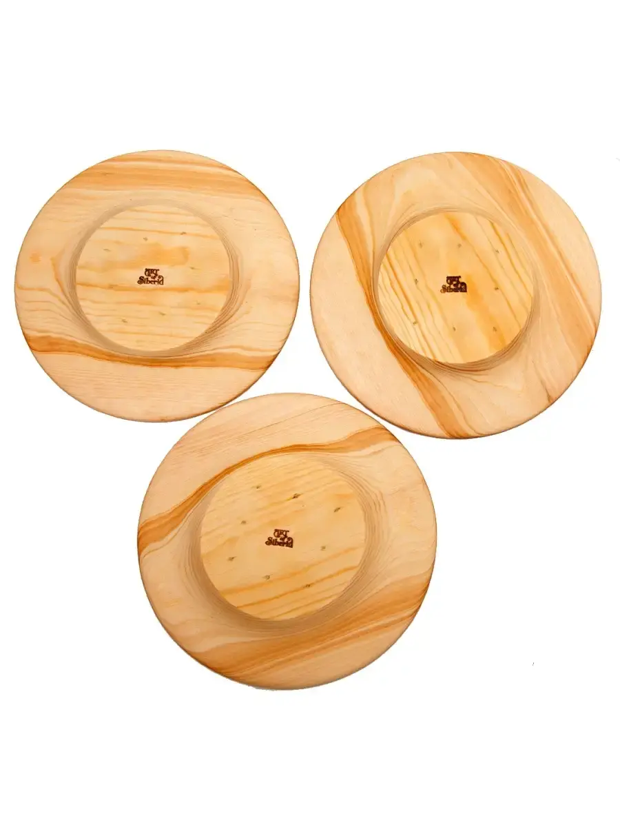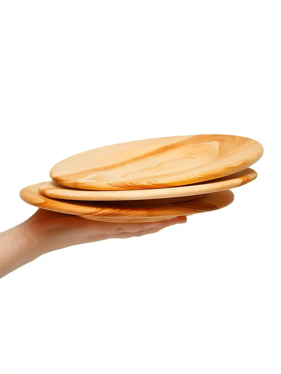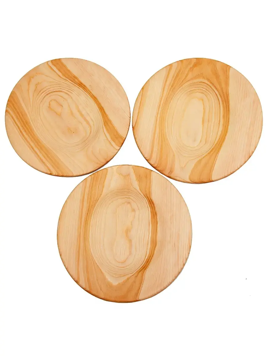 Набор плоских тарелок из натурального дерева Сибирского Кедра! Покрыты раскаленным пчелиным воском и маслом. Пригодны для пищевых продуктов. Абсолютно экологичный продукт. Размер одной тарелки: диаметр 21 см., высота 2,5 см. 3 шт.