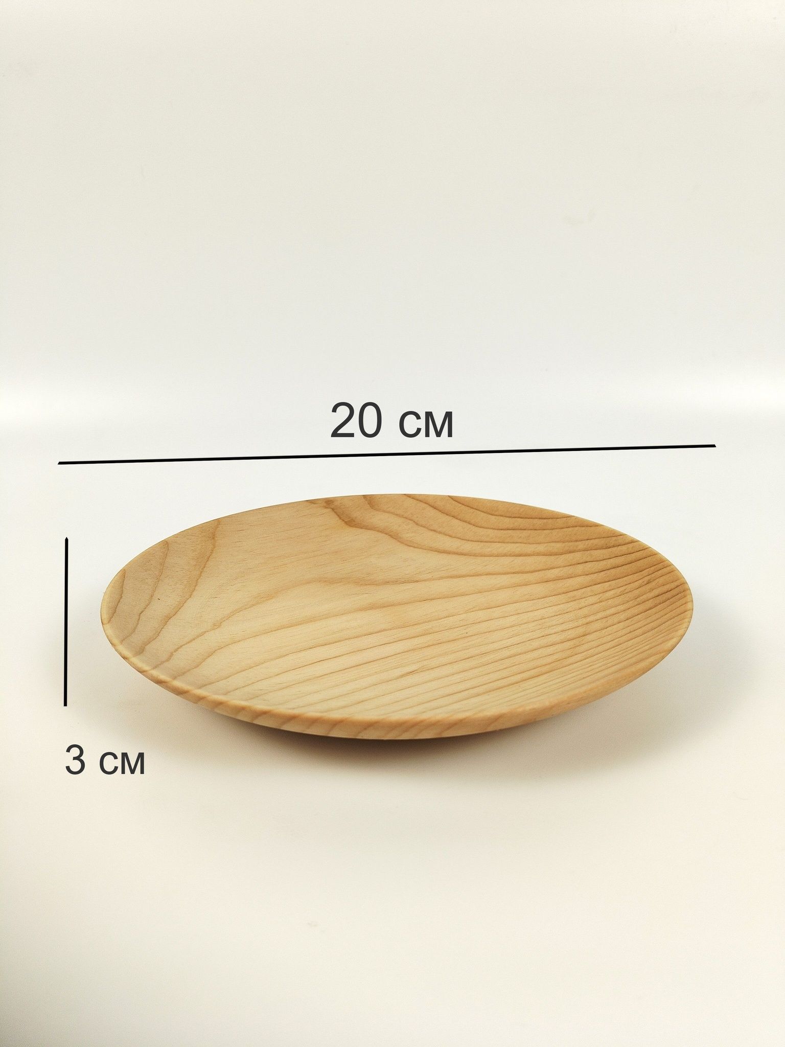 Диаметр 20 см, высота 3 см.